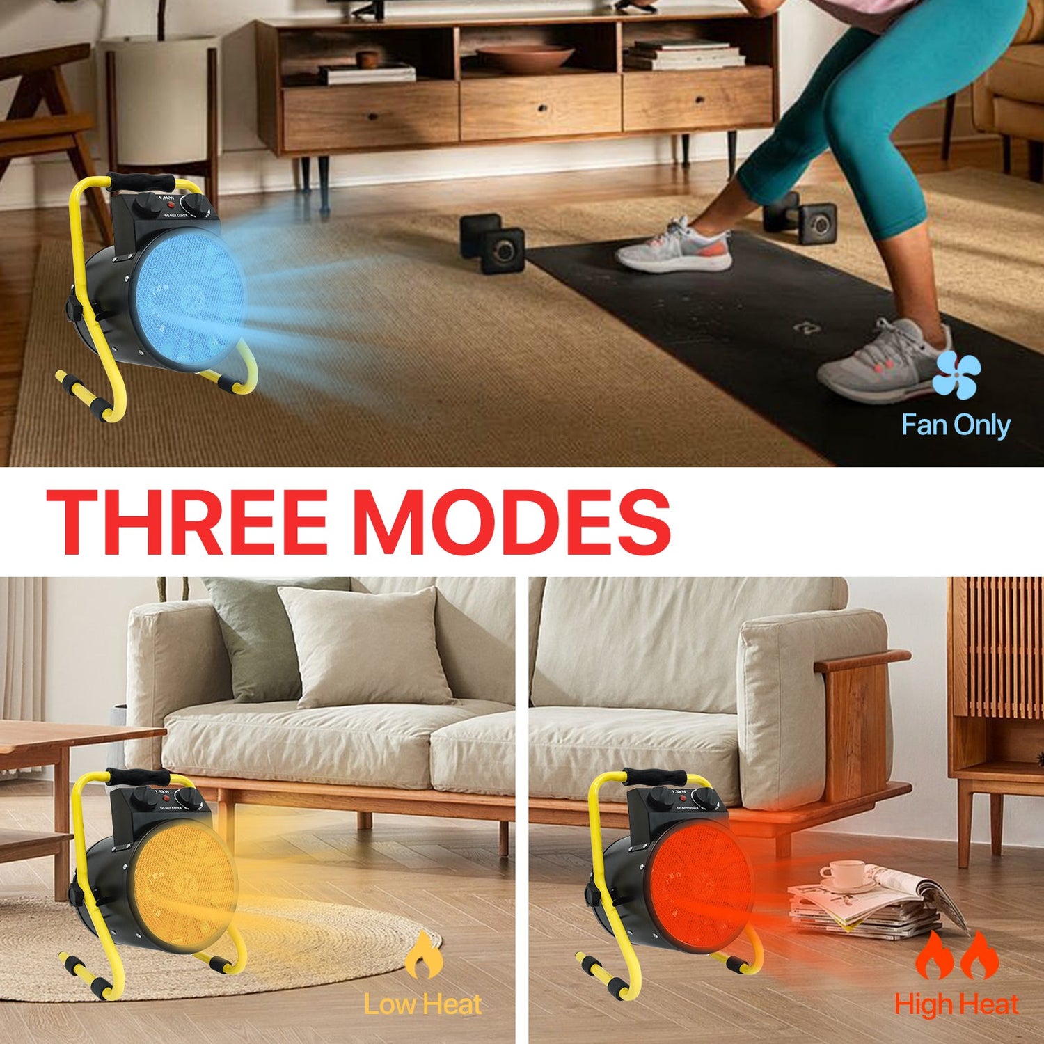 INFINITE HEAT SETTING: This powerful space heaters comes with a fan-only mode and infinite heat adjustment to the highest 1500W, you can easily adjust to your preferred heat setting.