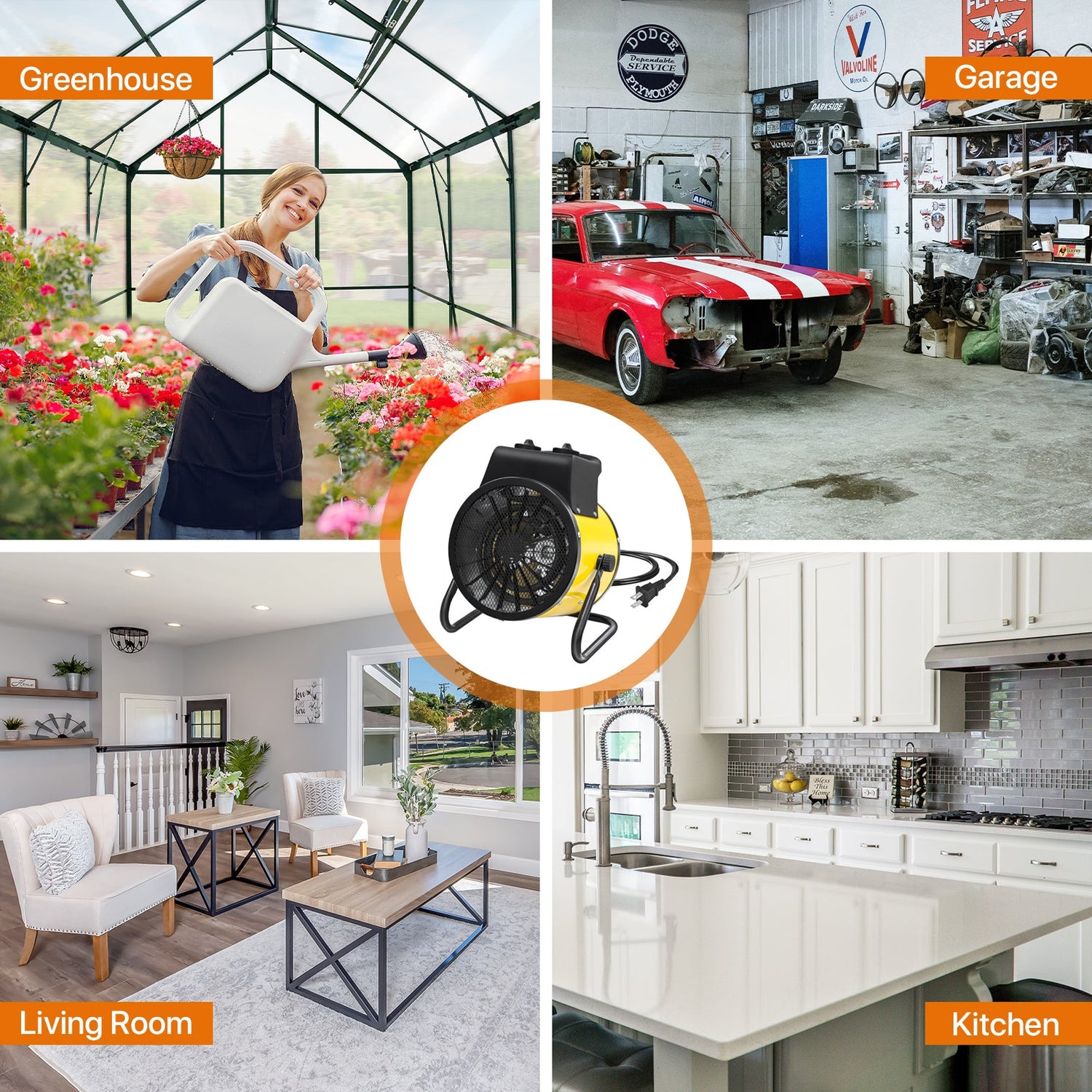 RADIANT HEATING: With 1500W of heat output, the EAGLE PEAK greenhouse heater can provide heat for small rooms and spaces up to 120 sqft. It is excellent for warming enclosed spaces such as greenhouses, garages, grow tents, sheds, RVs, and more. A low CFM fan helps distribute heat with low air movement and low noise.