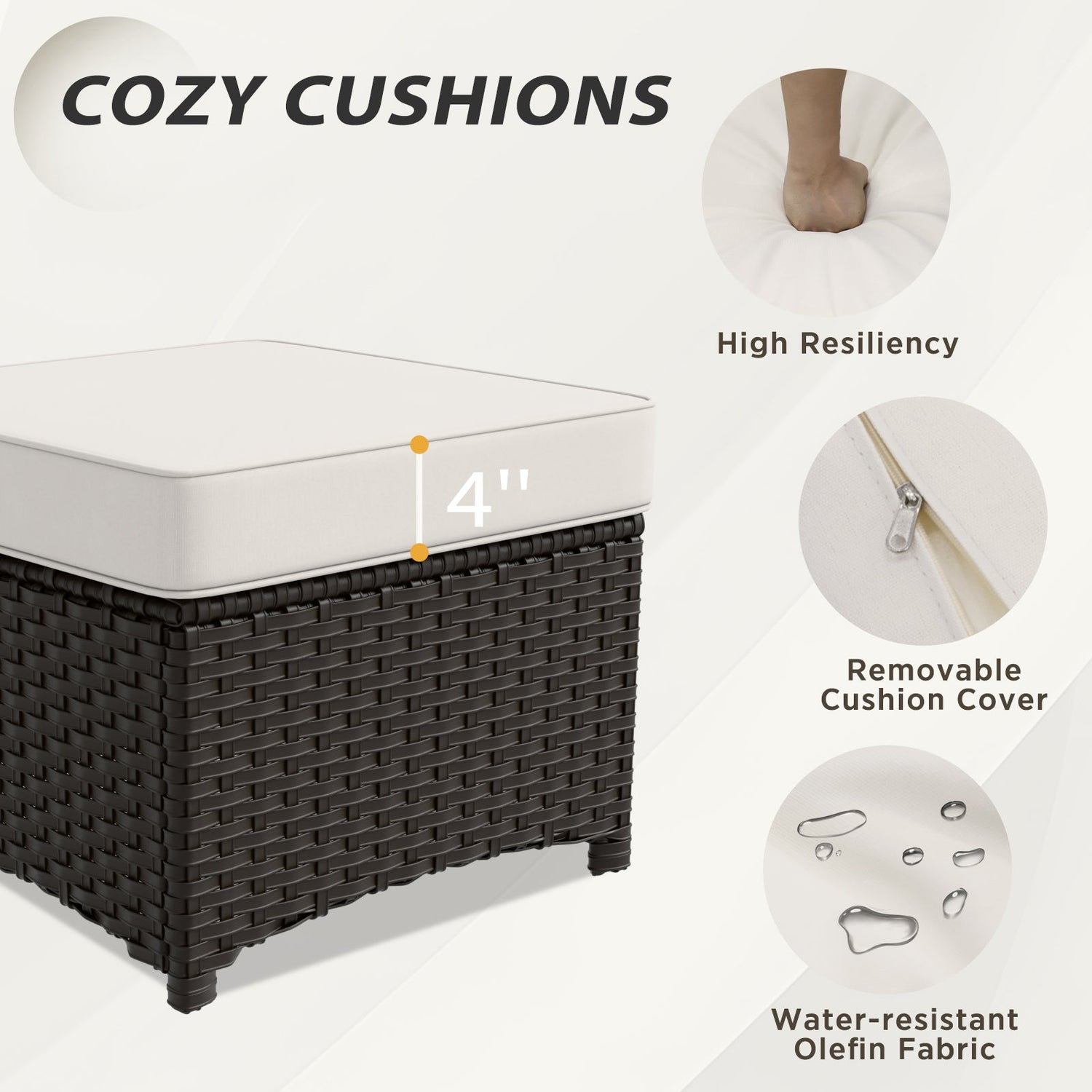 FLEXIBLE DESIGN: Whether you're creating a cozy corner with a bistro table and chairs or styling your backyard with other wicker furniture, these ottomans fit seamlessly into any layout, giving you endless flexibility.