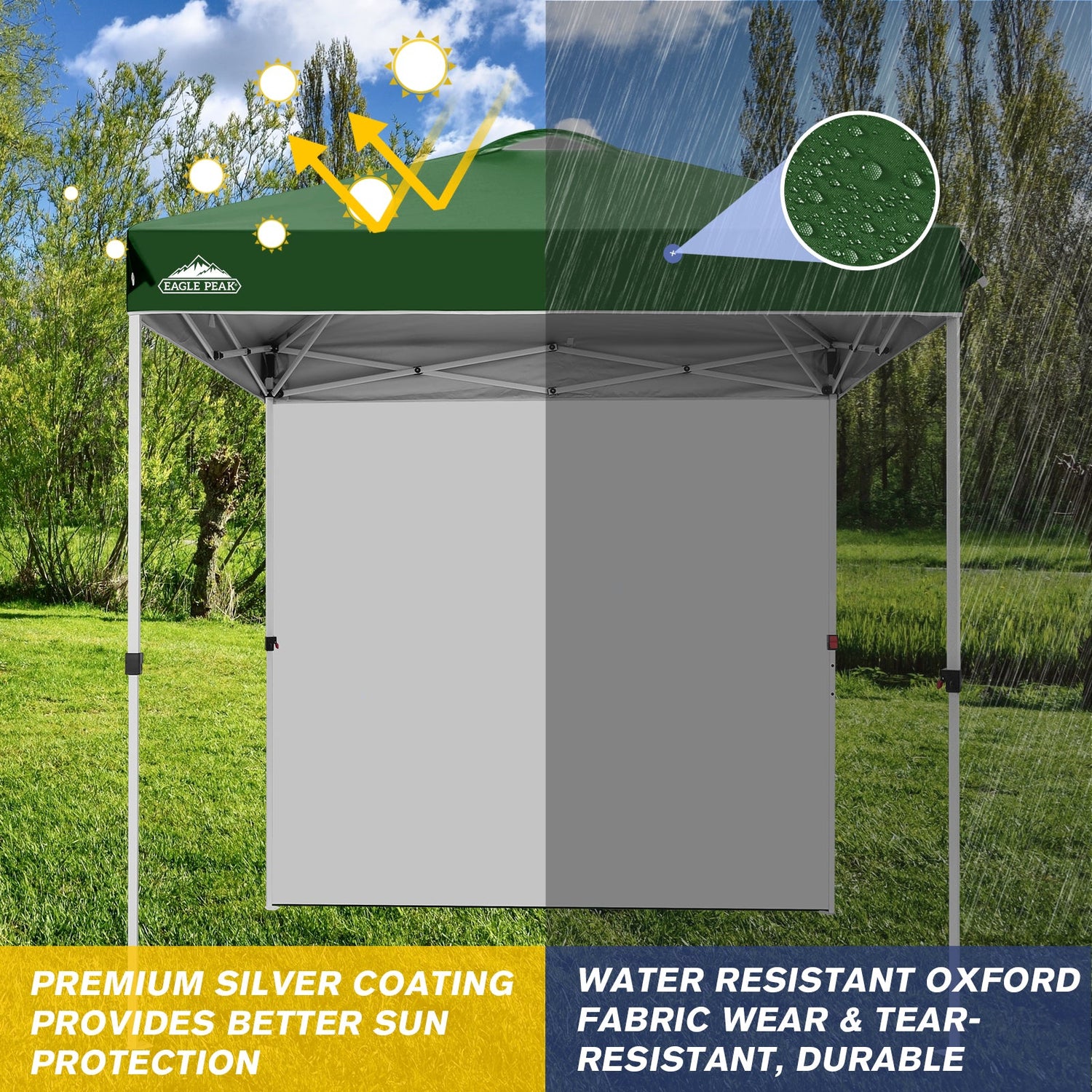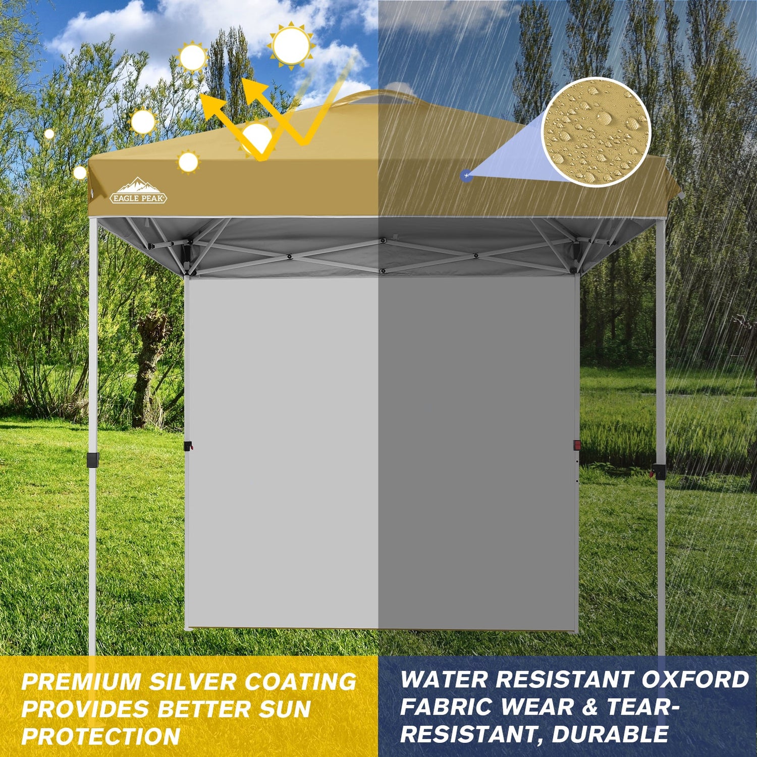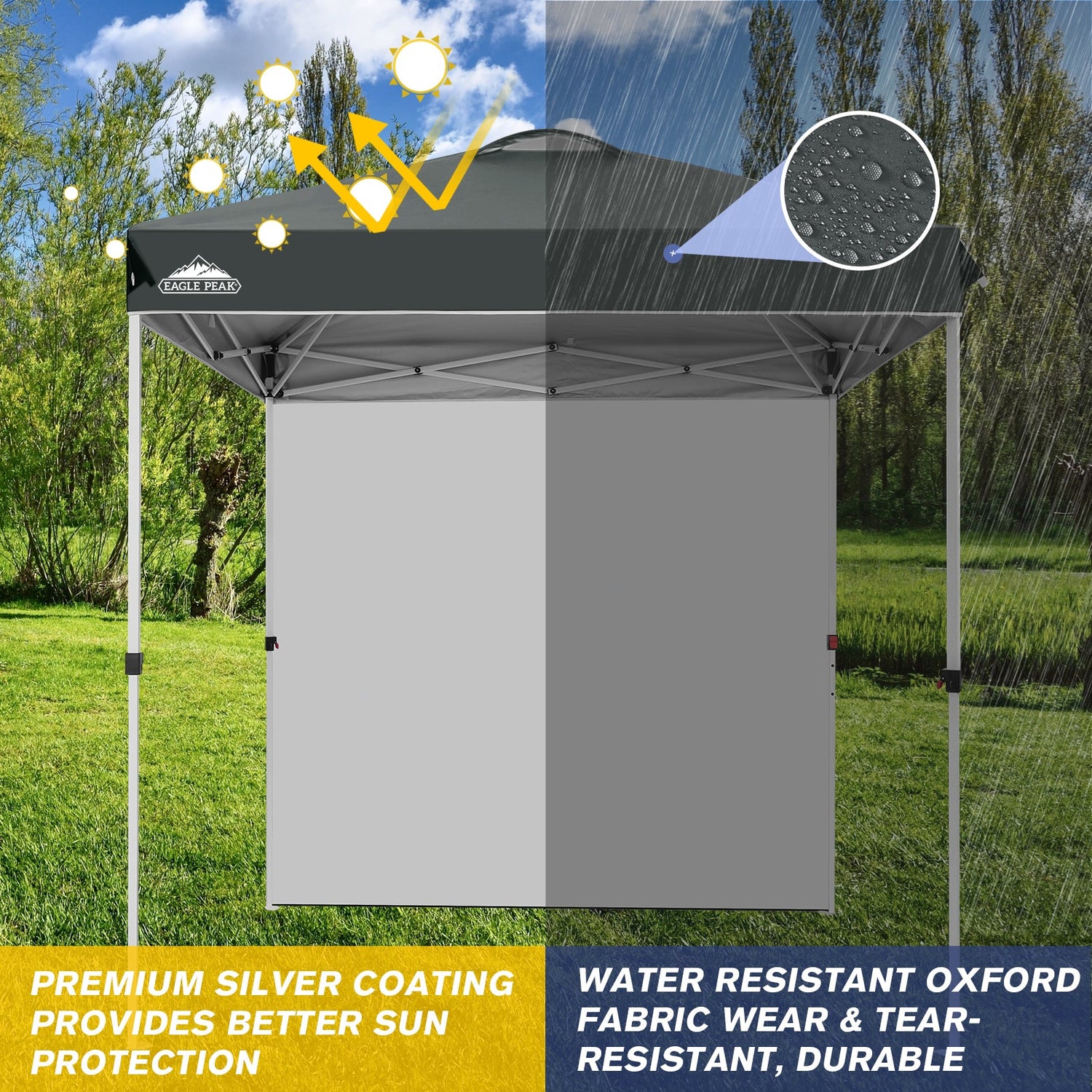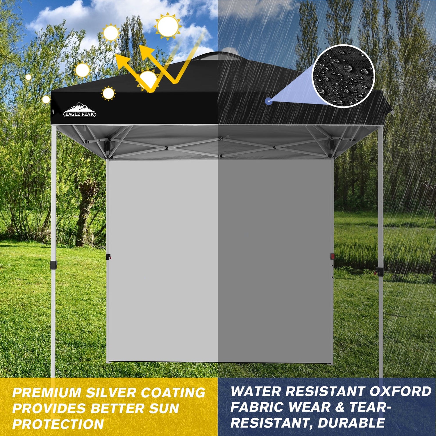 • EAGLE PEAK 6.6x6.6 Pop Up Canopy Tent with Removable Sidewall