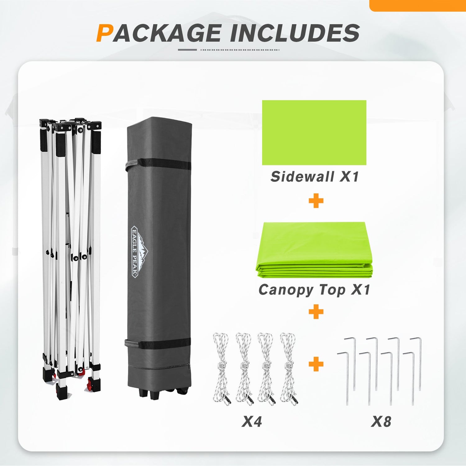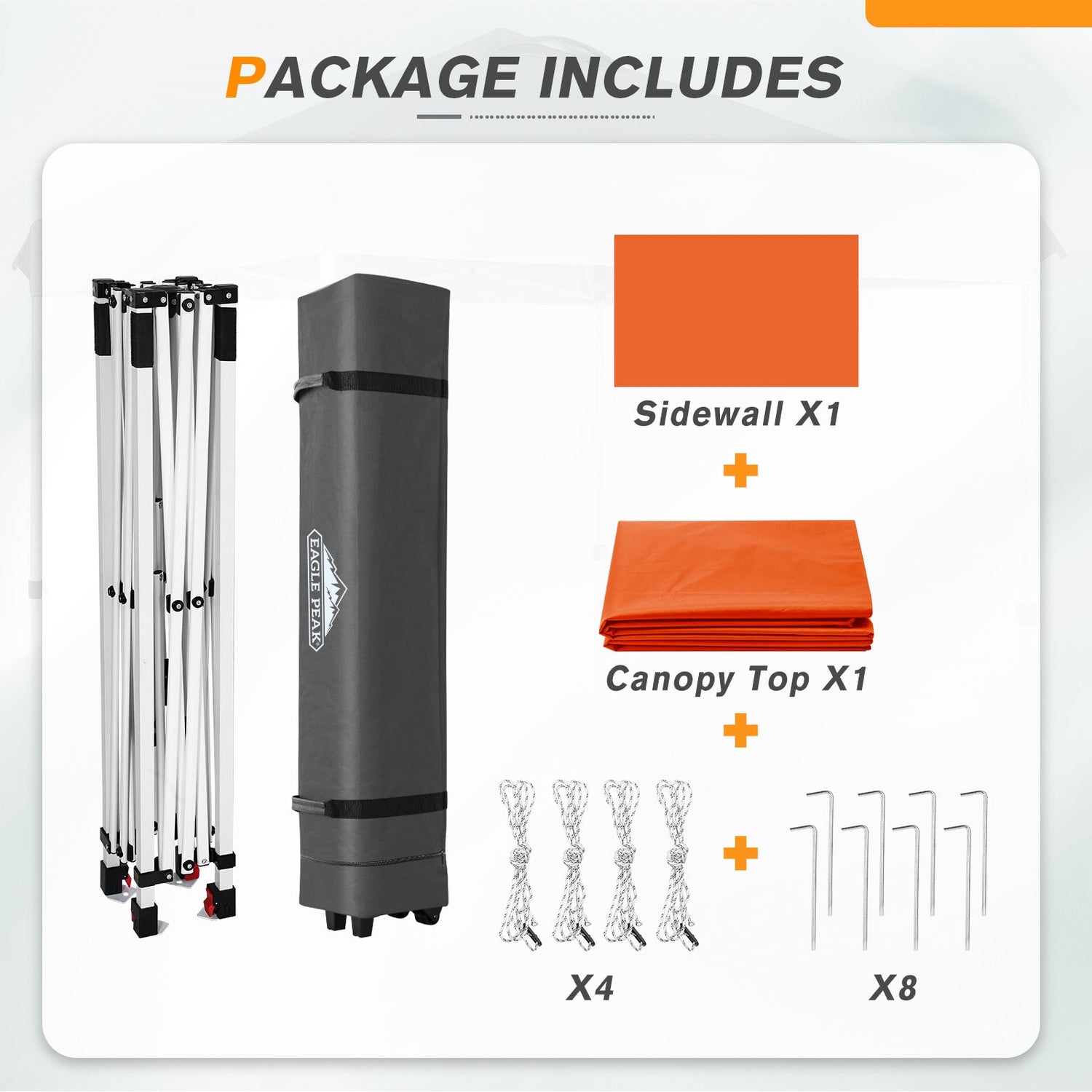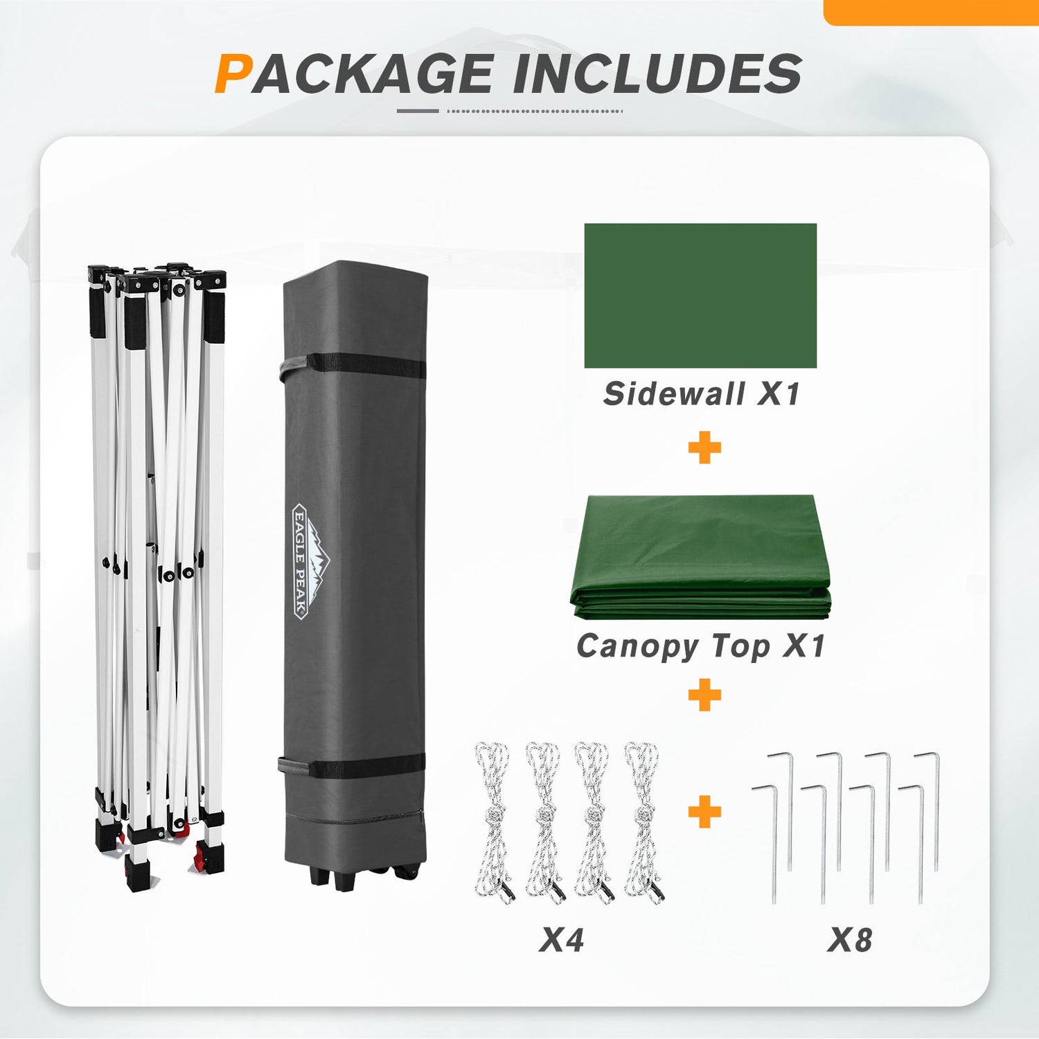 • EAGLE PEAK PROMISE: EAGLE PEAK offers a 1-year limited after sale protection from the original date of purchase. Unlike many other canopy manufacturers, EAGLE PEAK offers this for our frames, canopies and bags! If you have any other questions, please contact our professional service team.