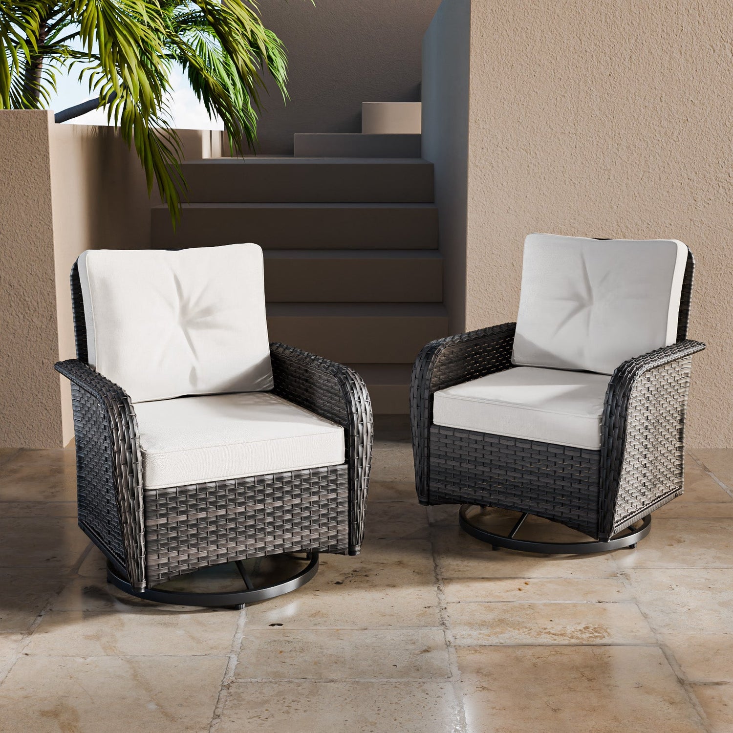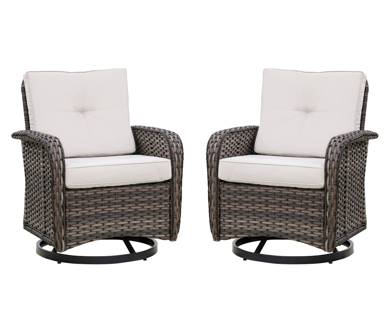 EAGLE PEAK Rustic Veranda Outdoor Patio Chairs, Wicker Furniture Set, Swivel Rocking Chairs, Set of 2, Gray/Beige