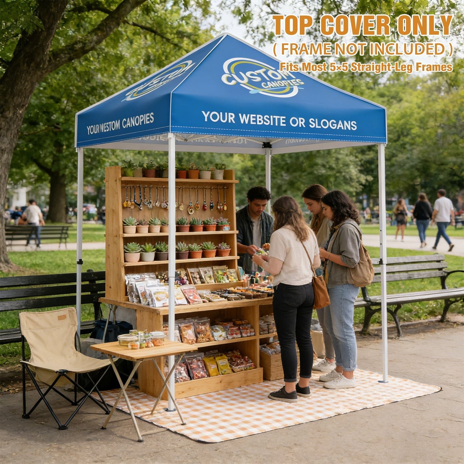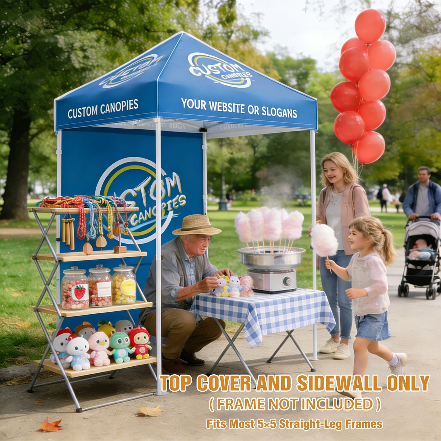 CUSTOM FIT & FULL-COVER PRINTING: Designed to be made-to-order for your 5x5 commercial canopy frame, this canopy tent top is tailored to your exact measurements for a perfect fit. Add your logo or custom design with 100% coverage on all outer surfaces for maximum brand visibility.