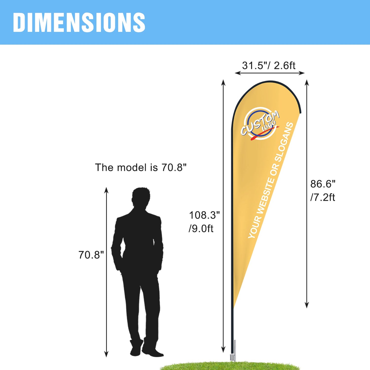 - CUSTOM BRANDED FLAG: Custom full-color printed flag allow you to personalize these teardrop flag banners with your logo, brand and marketing message. Customization is available on both sides, making it perfect for business events.