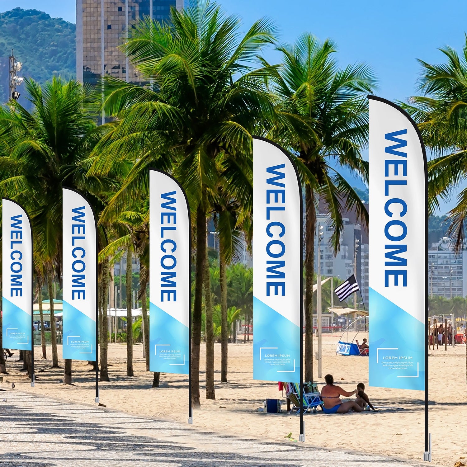 MARKETING DISPLAY: The custom promotion advertising flags can be used for various purposes such as trade shows, brand advertising, street markets, parties, picnics, sports events, BBQ, beach outings, or other indoor or outdoor marketing events.