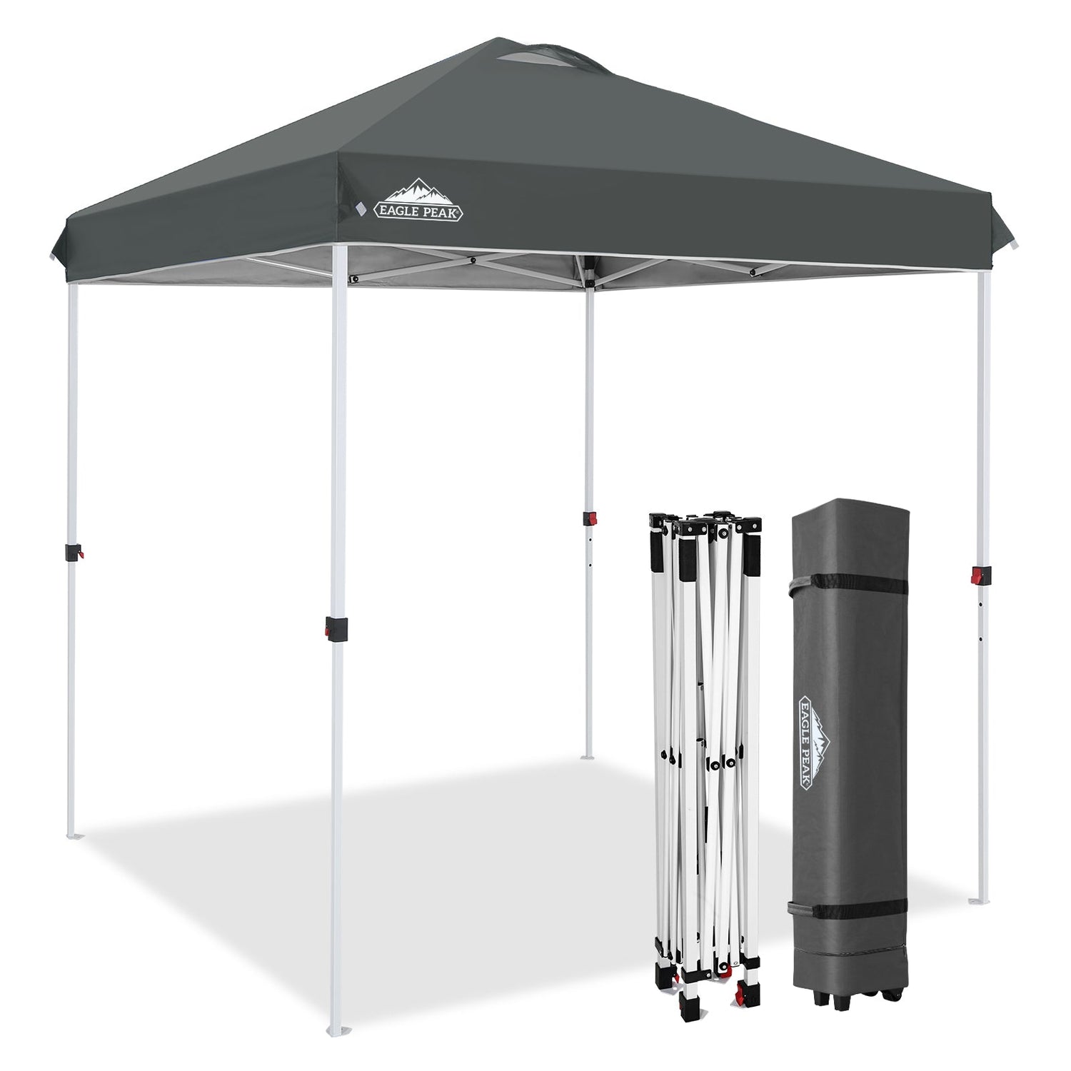 UPGRADED PACKAGE: This 6.6 x 6.6 ft instant canopy comes with 1 x canopy frame, 1 x canopy top, 1 x roller bag, 4 x guy ropes, 8 x steel stakes. Take this canopy with you anywhere using the portable compact 600x300D wheeled carrying bag.