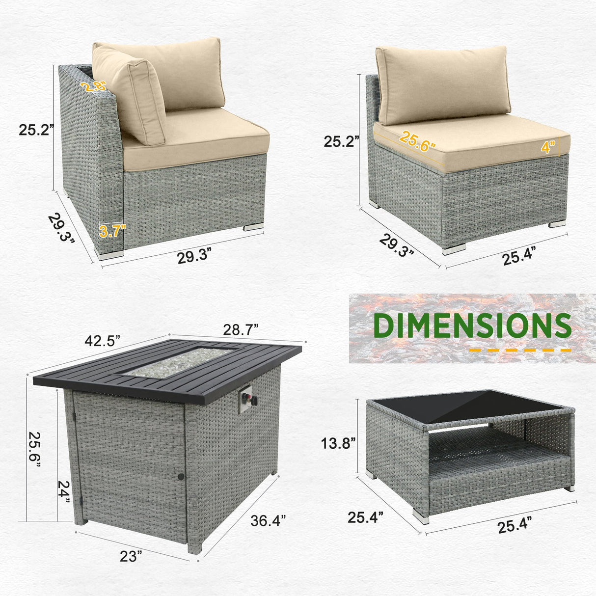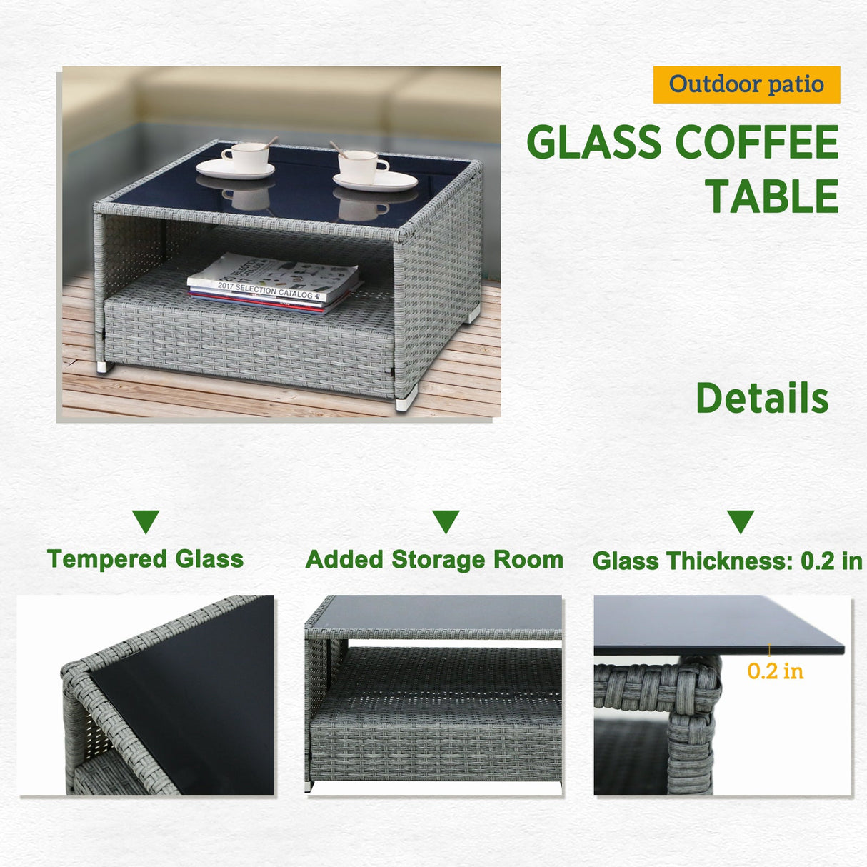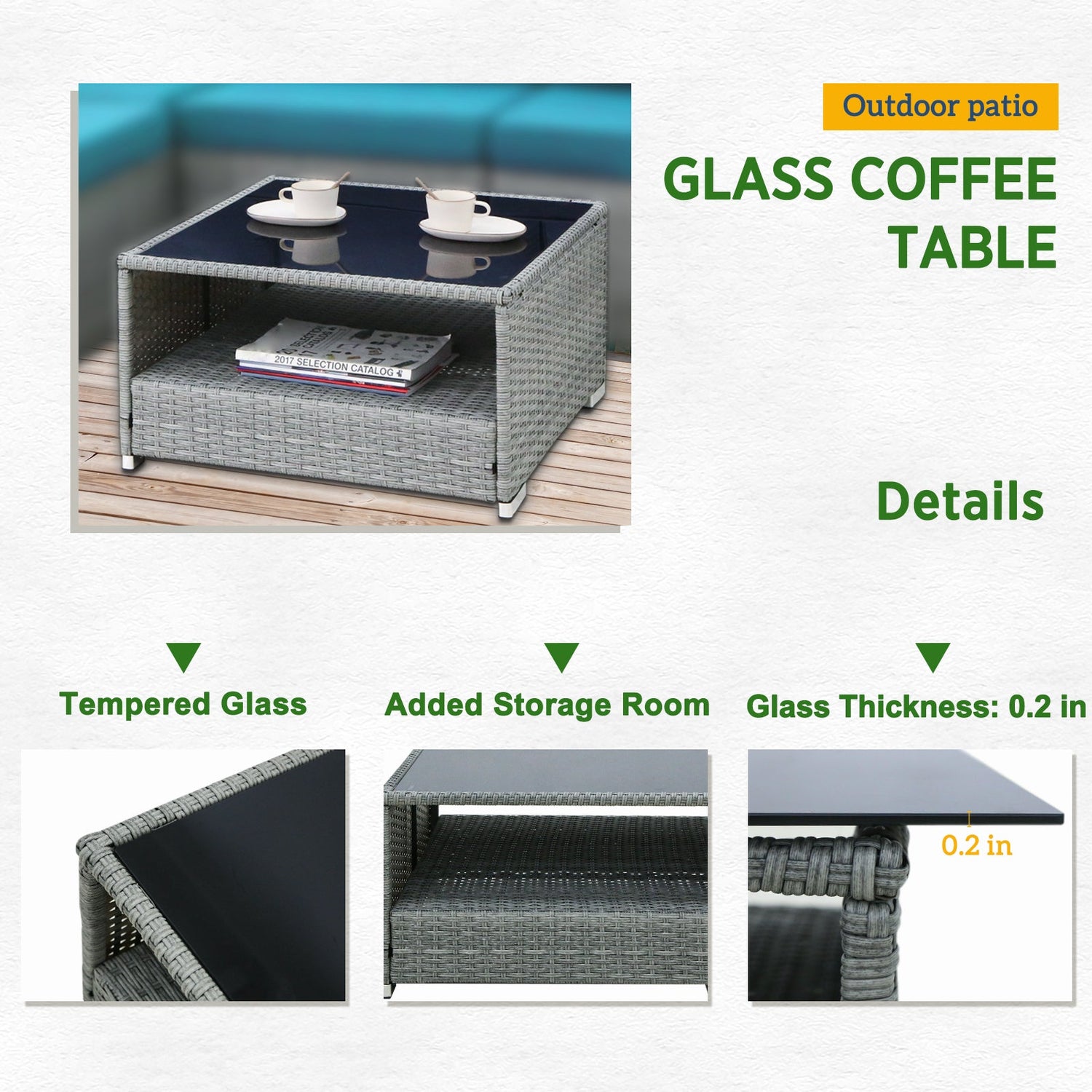 - GLASS COFFEE TABLES: Includes (2) 25.4in x 25.4in x 13.8in (LxWxH) square PE rattan coffee tables with tempered glass tops.Use individually or side by side.