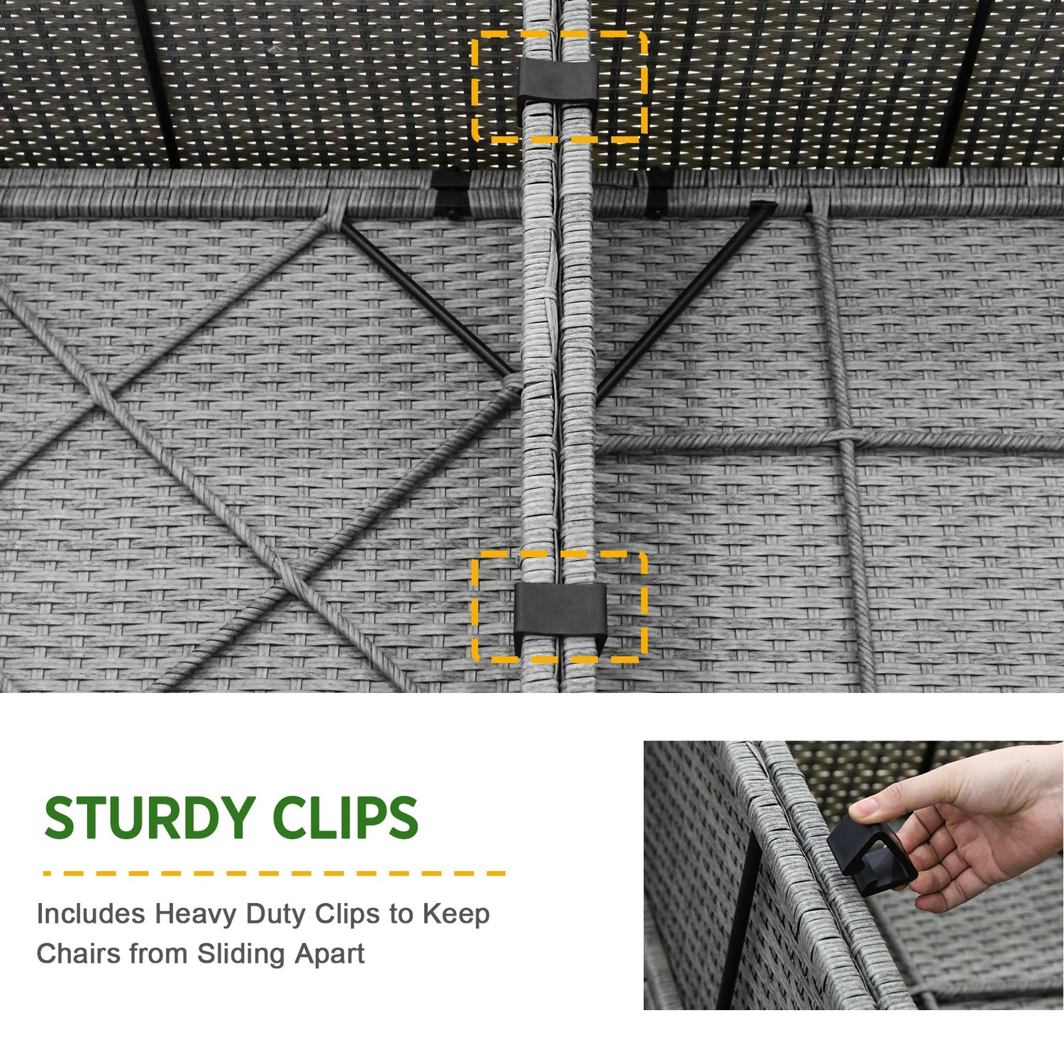 - STURDY & DURABLE: Our wicker sets are crafted with weather-resistant PE rattan over a sturdy powder-coated steel frame to ensure durability. The weight capacity of each seat is 360lbs. The seat and back cushions are extra-plush with removable covers.