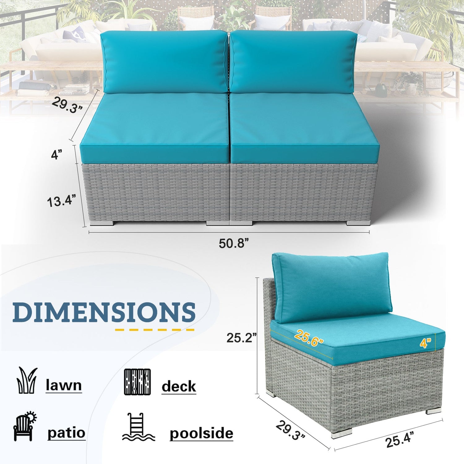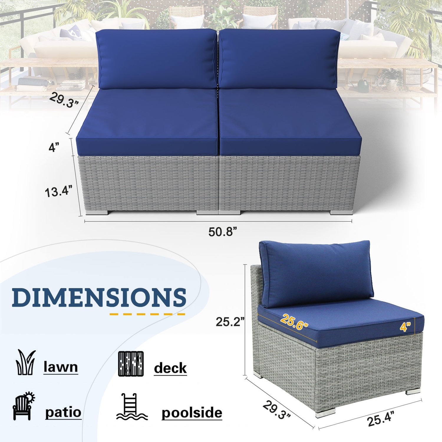 2 Piece Outdoor Armless Wicker Sofa Set with Sectional Wicker Loveseat - Dark Blue is backordered and will ship as soon as it is back in stock.