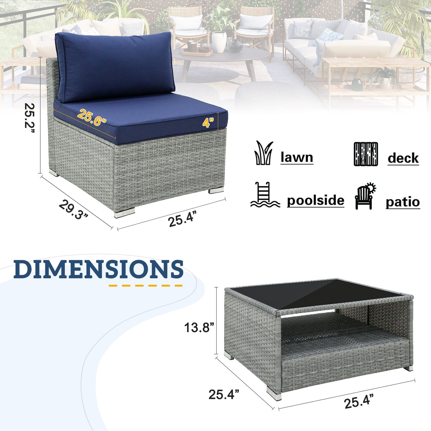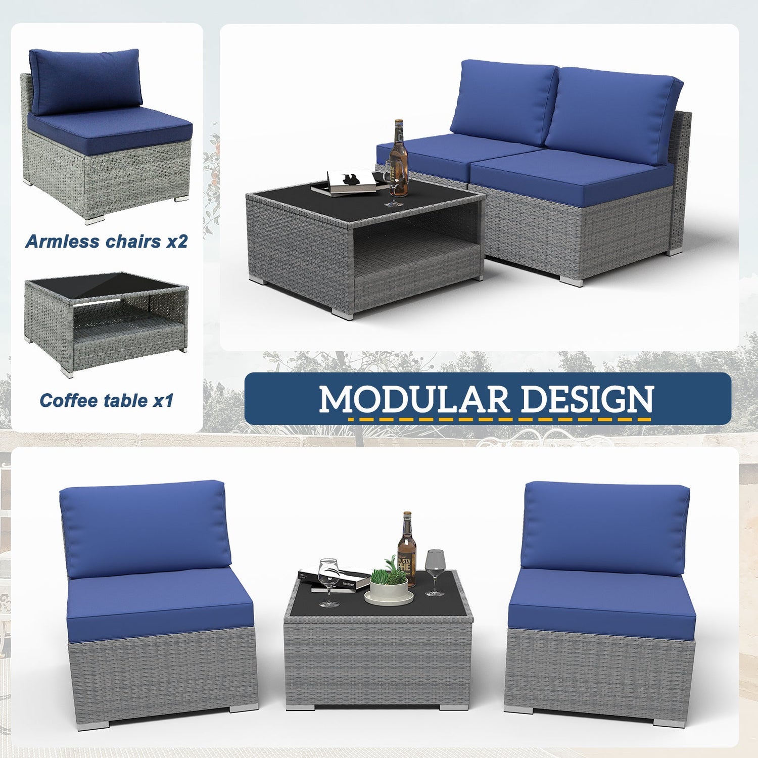 3 Piece Outdoor Patio Armless Chairs with Coffee Table, Sectional Wicker Loveseat Sofa - Dark Blue is backordered and will ship as soon as it is back in stock.