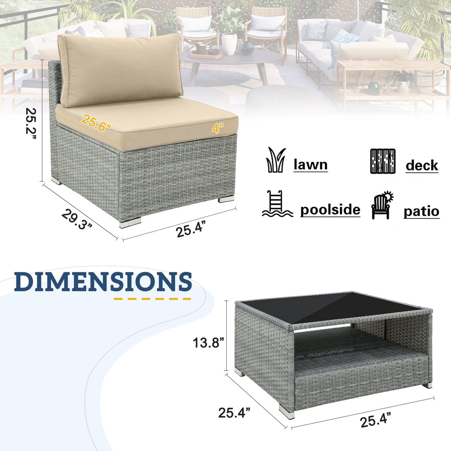 - STURDY & DURABLE: Our armless chairs are crafted with weather-resistant PE rattan over a sturdy powder-coated steel frame to ensure durability. The weight capacity of each seat is 360lbs. The seat and back cushions are extra-plush with removable covers.