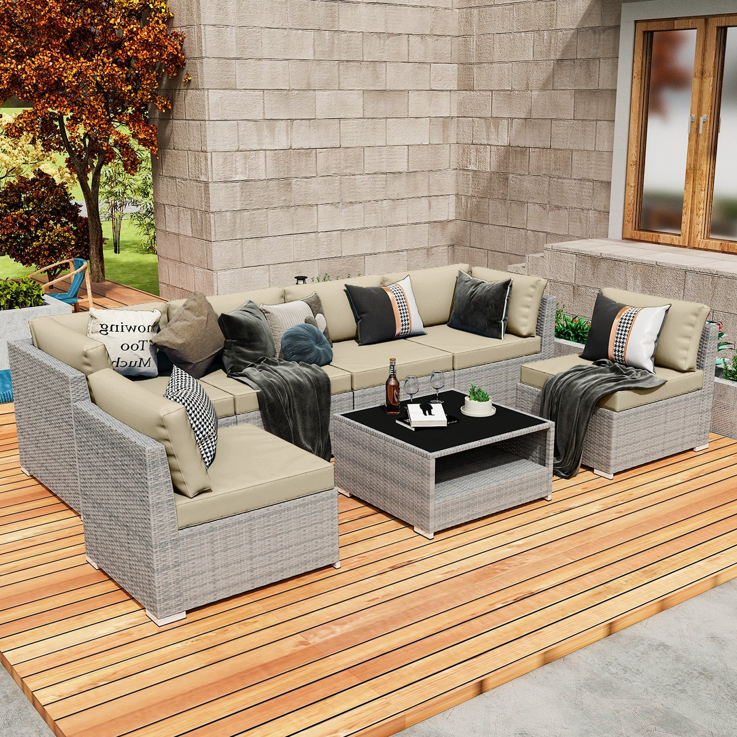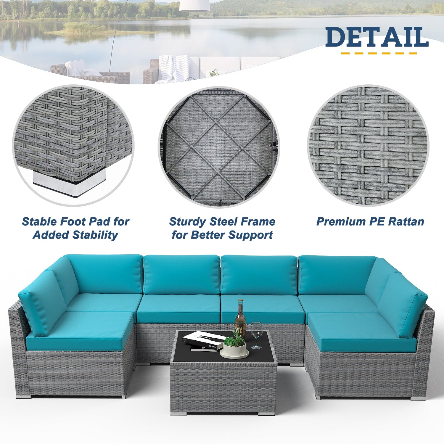7 Piece Outdoor Wicker Patio Furniture Set with Coffee Table for 6 People