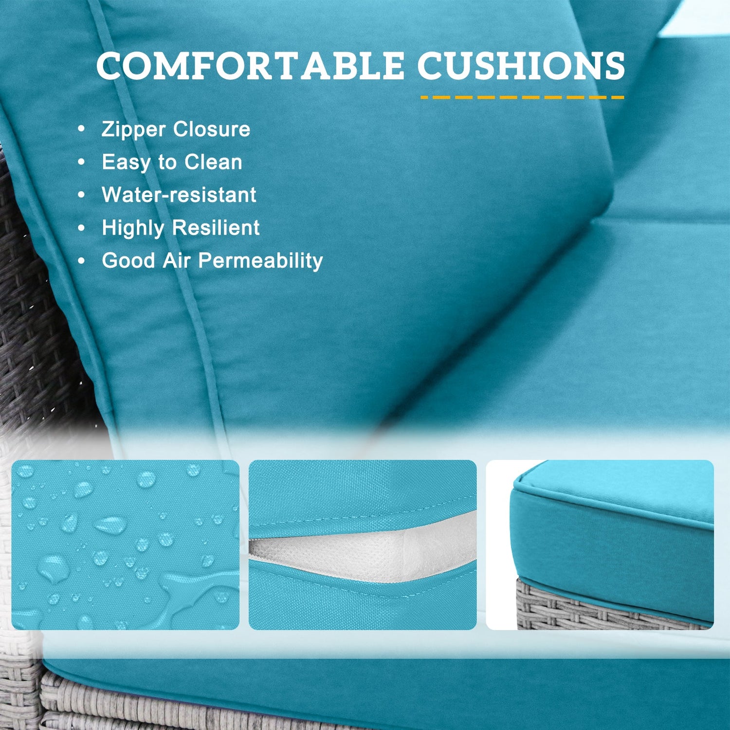 - STURDY & DURABLE: Our wicker sets are crafted with weather-resistant PE rattan over a sturdy powder-coated steel frame to ensure durability. The weight capacity of each seatis 360lbs. The seat and back cushions are extra-plush with removable covers.