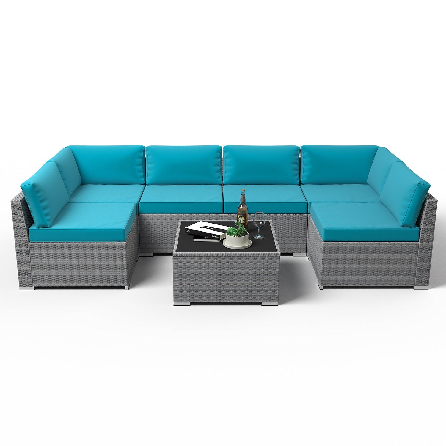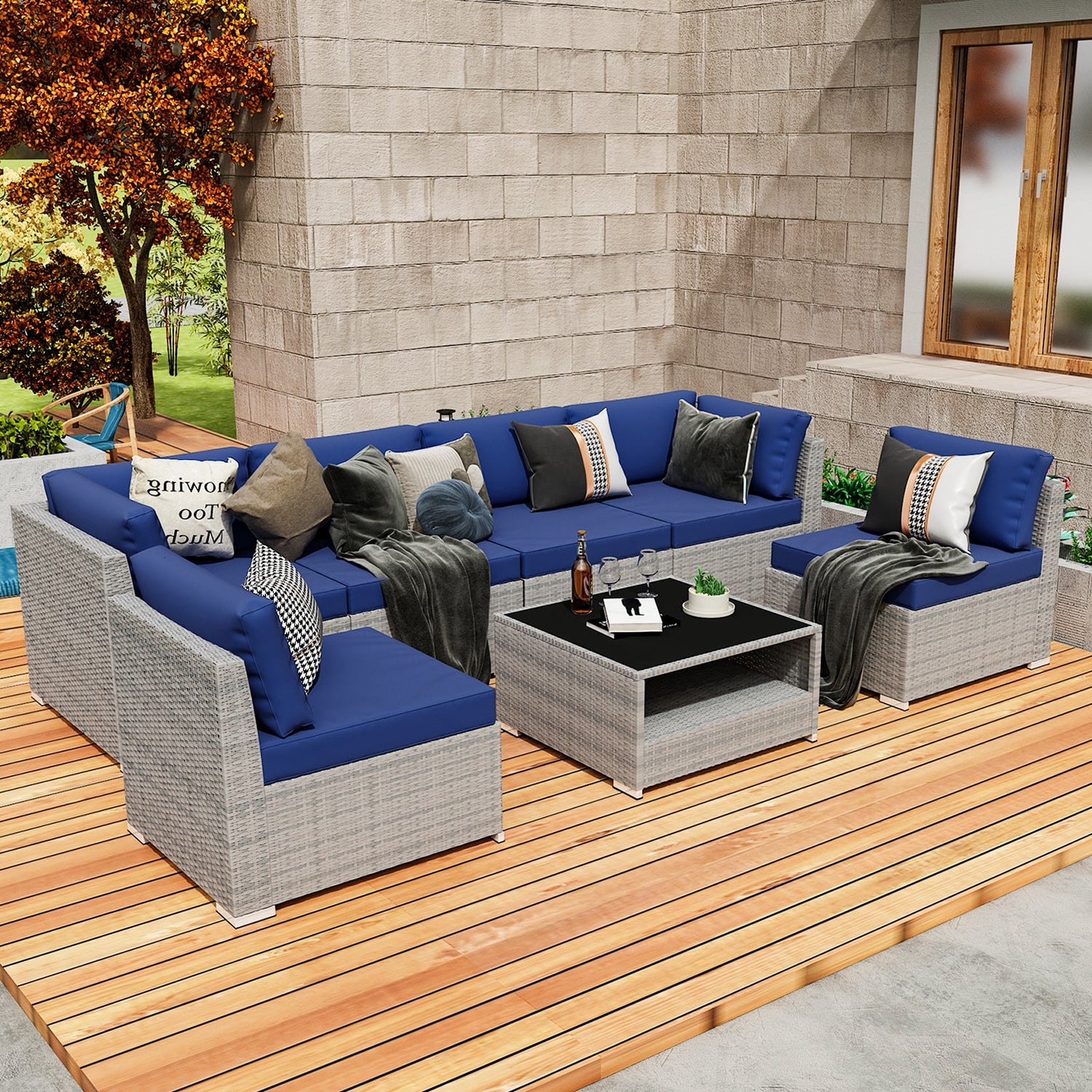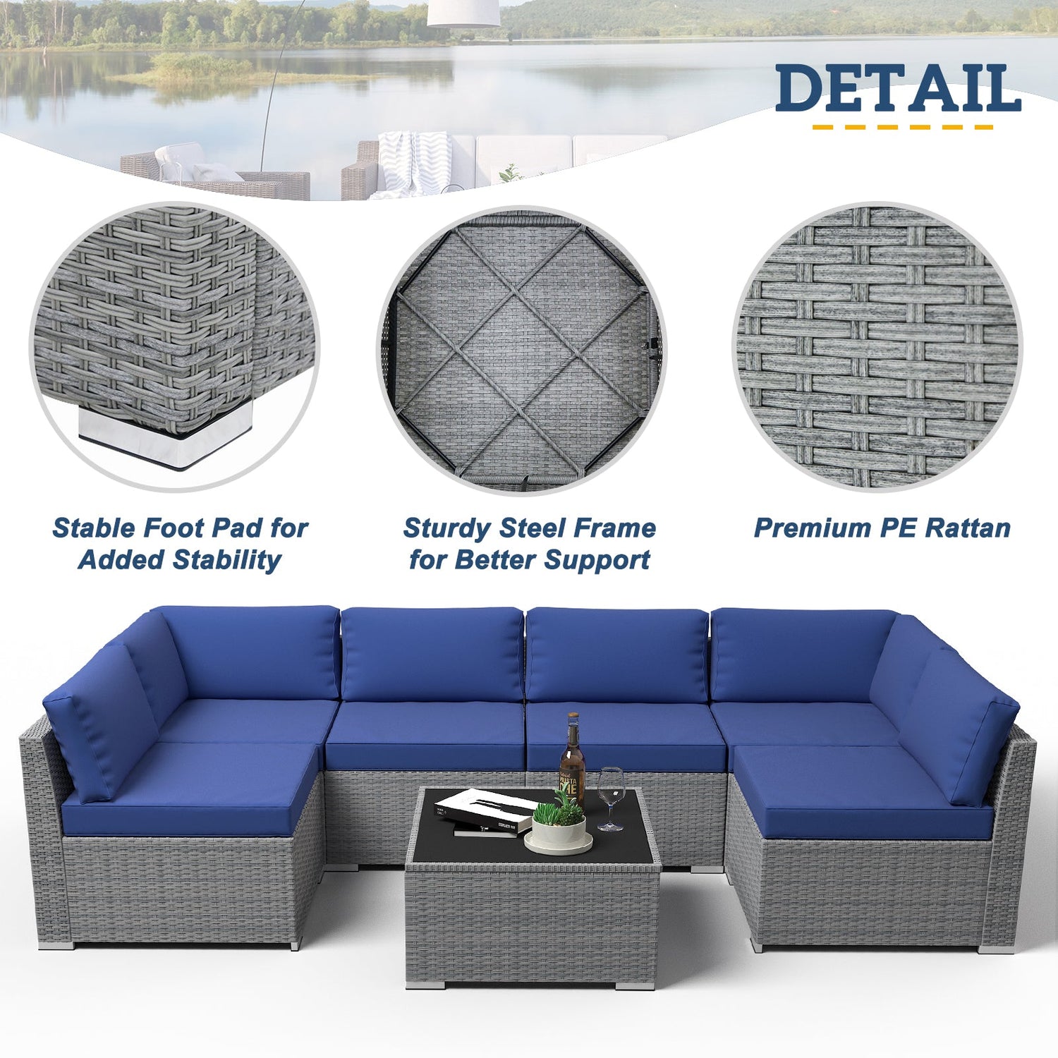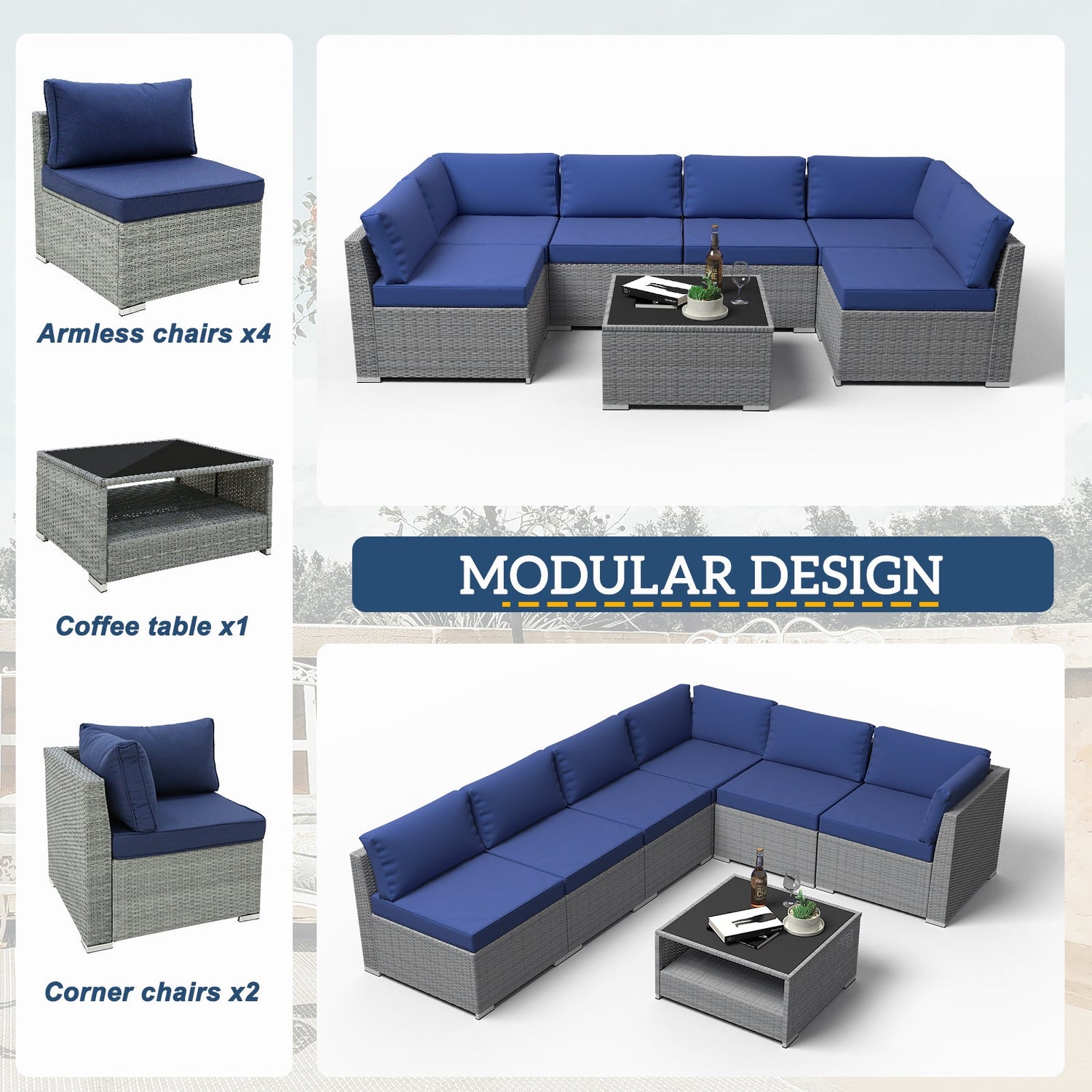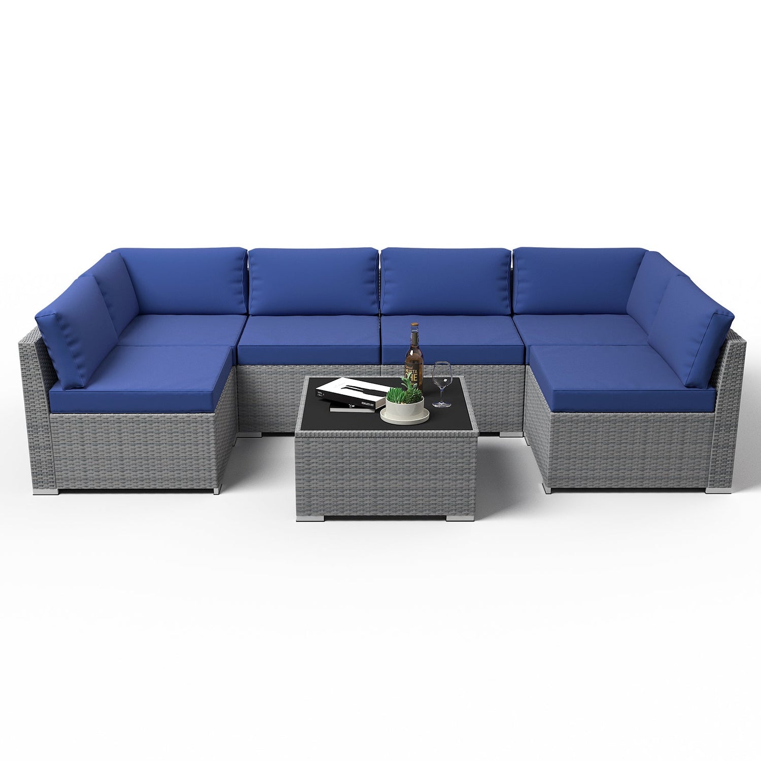 7 Piece Outdoor Wicker Patio Furniture Set with Coffee Table for 6 People - Dark Blue is backordered and will ship as soon as it is back in stock.