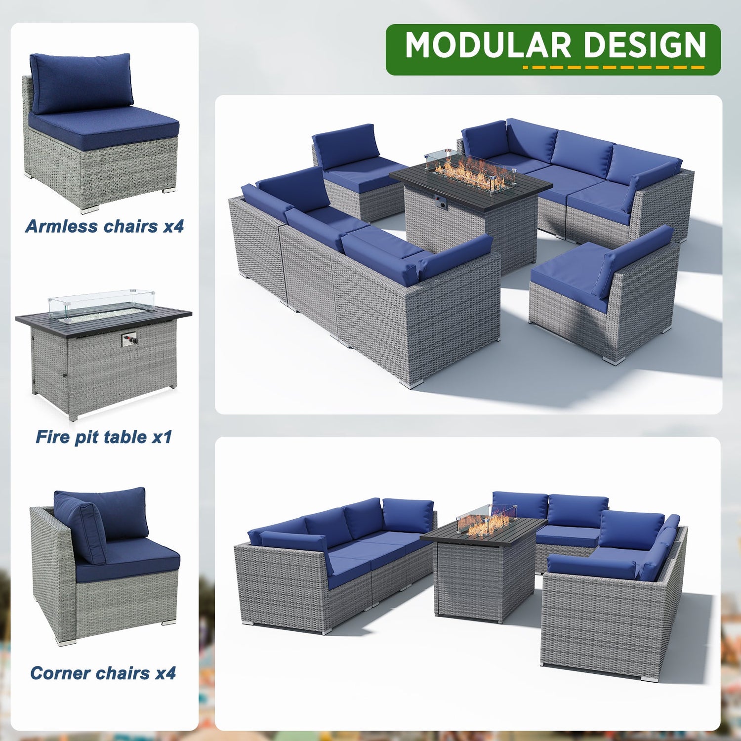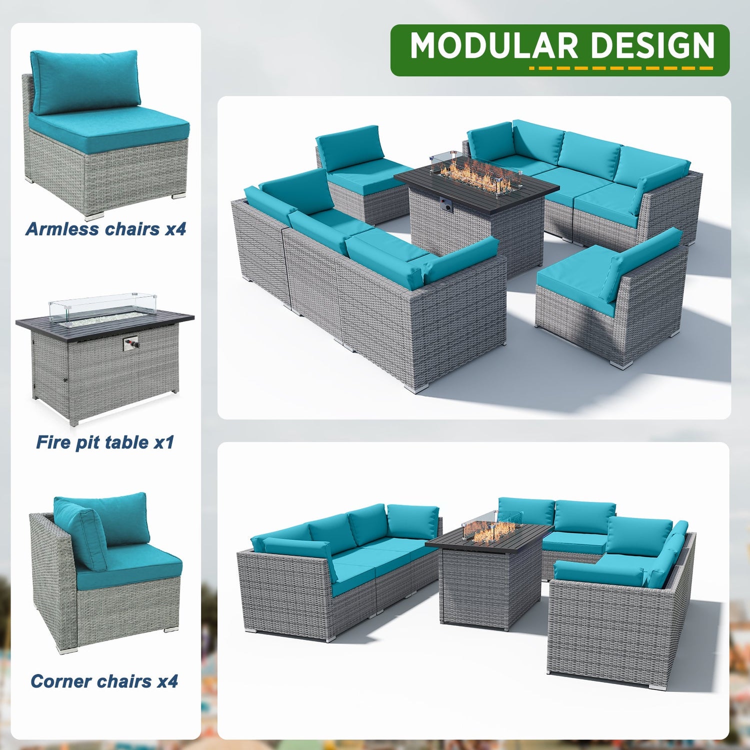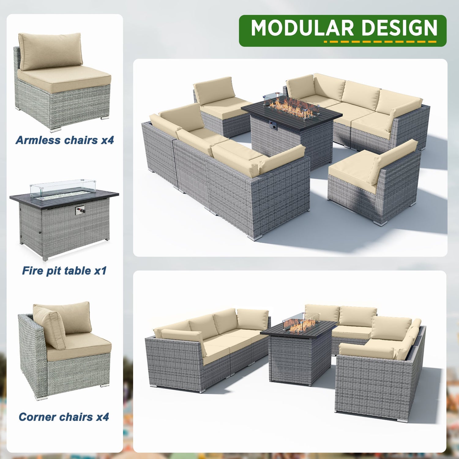 - MODULAR DESIGN: The 9-piece wicker set can be assembled as shown, pieces can be used individually, or configured as desired. Perfectly sized for your balcony, patio, or deck.