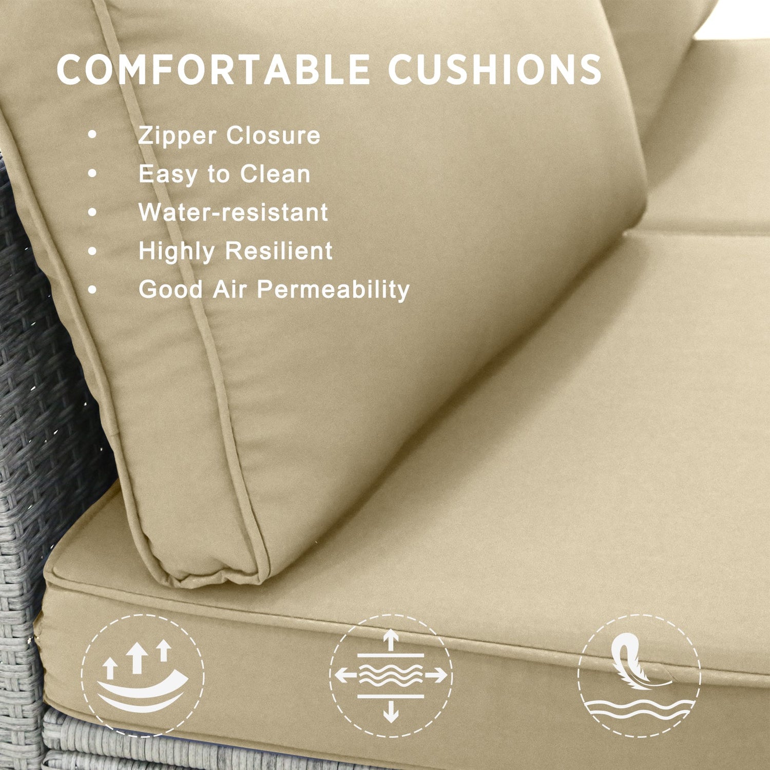 - STURDY & DURABLE: Our wicker sets are crafted with weather-resistant PE rattan over a sturdy powder-coated steel frame to ensure durability. The weight capacity of each seat is 360lbs. The seat and back cushions are extra-plush with removable covers.