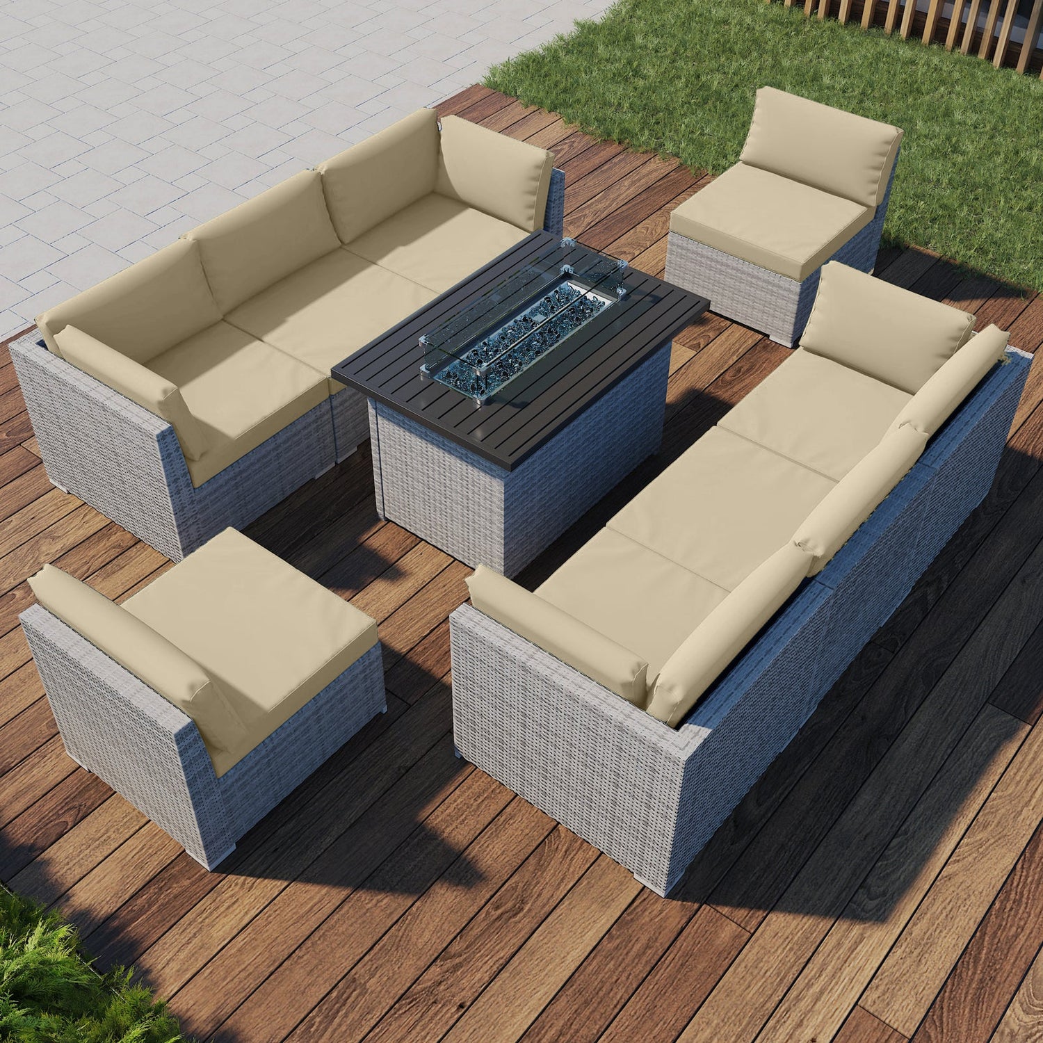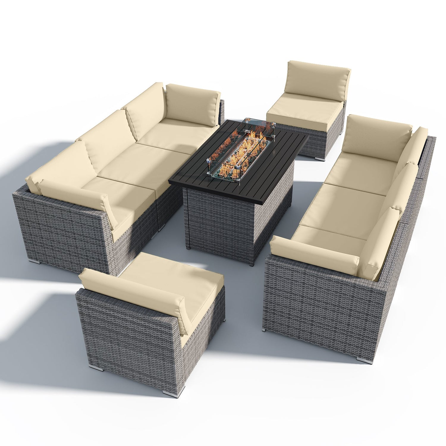 9 Piece Outdoor Wicker Patio Furniture Set with Fire Table for 8 People