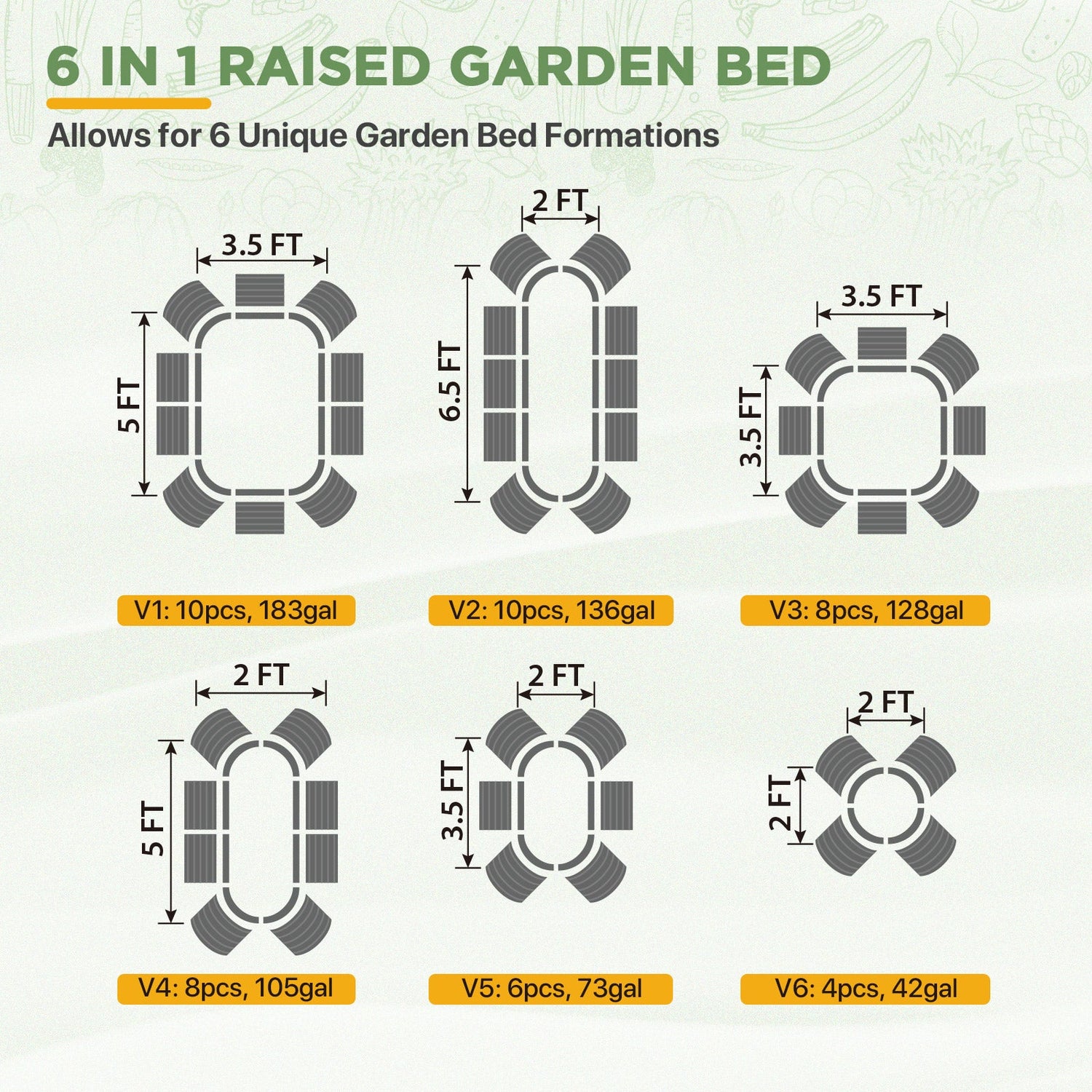 6 IN 1 MODULAR DESIGN: The modular design allows for easy customization, offering you the flexibility to arrange and configure the garden beds to suit your needs. Whether you have a small patio or a spacious backyard, it can be easily adapted to fit your space.