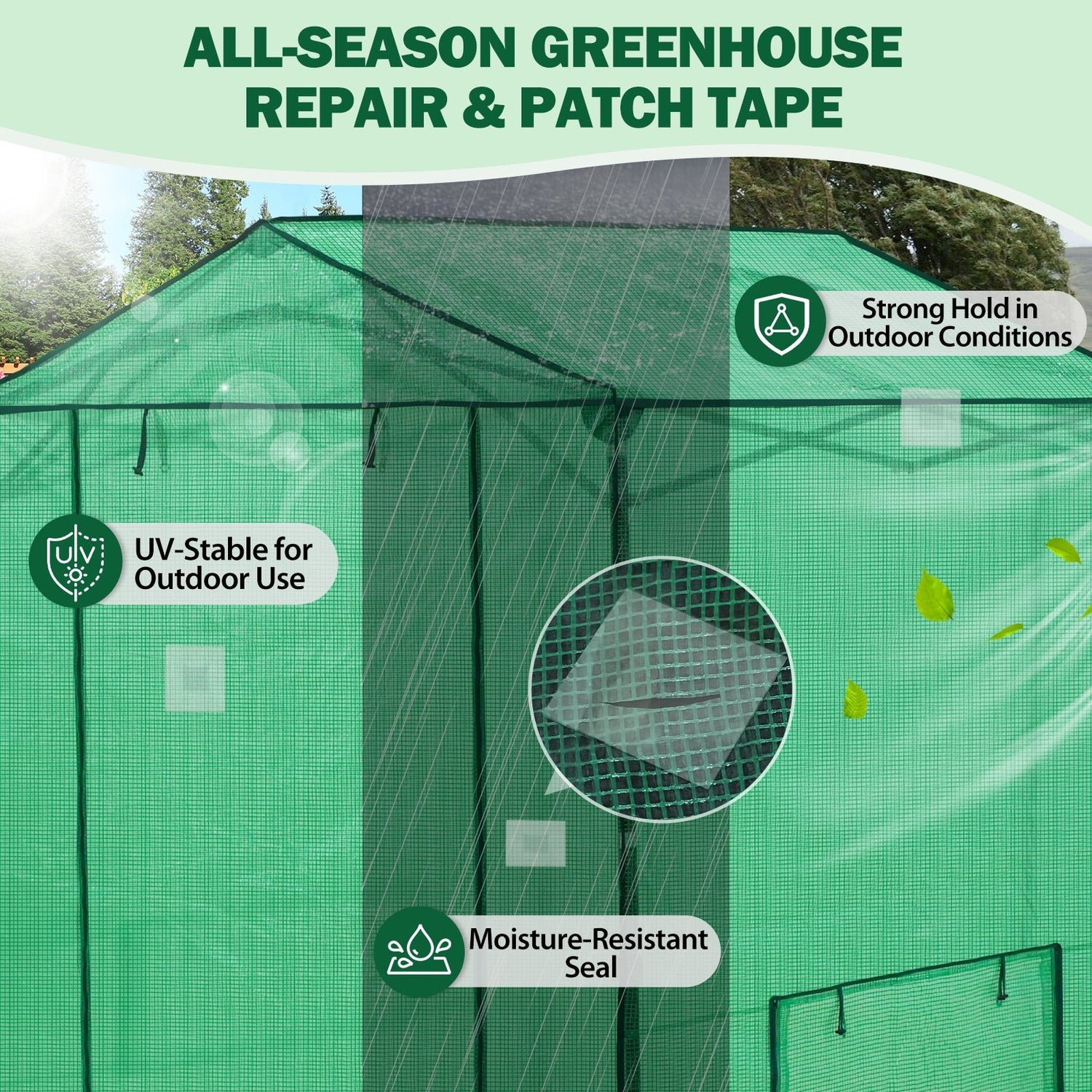 STRONG WEATHERPROOF HOLD: Built for ourtdoor repairs. Engineered for greenhouse repair, this heavy duty tape offers a durable, weatherproof seal that resists wind, rain, UV rays, and temperature changes. Ideal for fixing greenhouse plastic, securing plastic sheeting, and reinforcing greenhouse film in all seasons