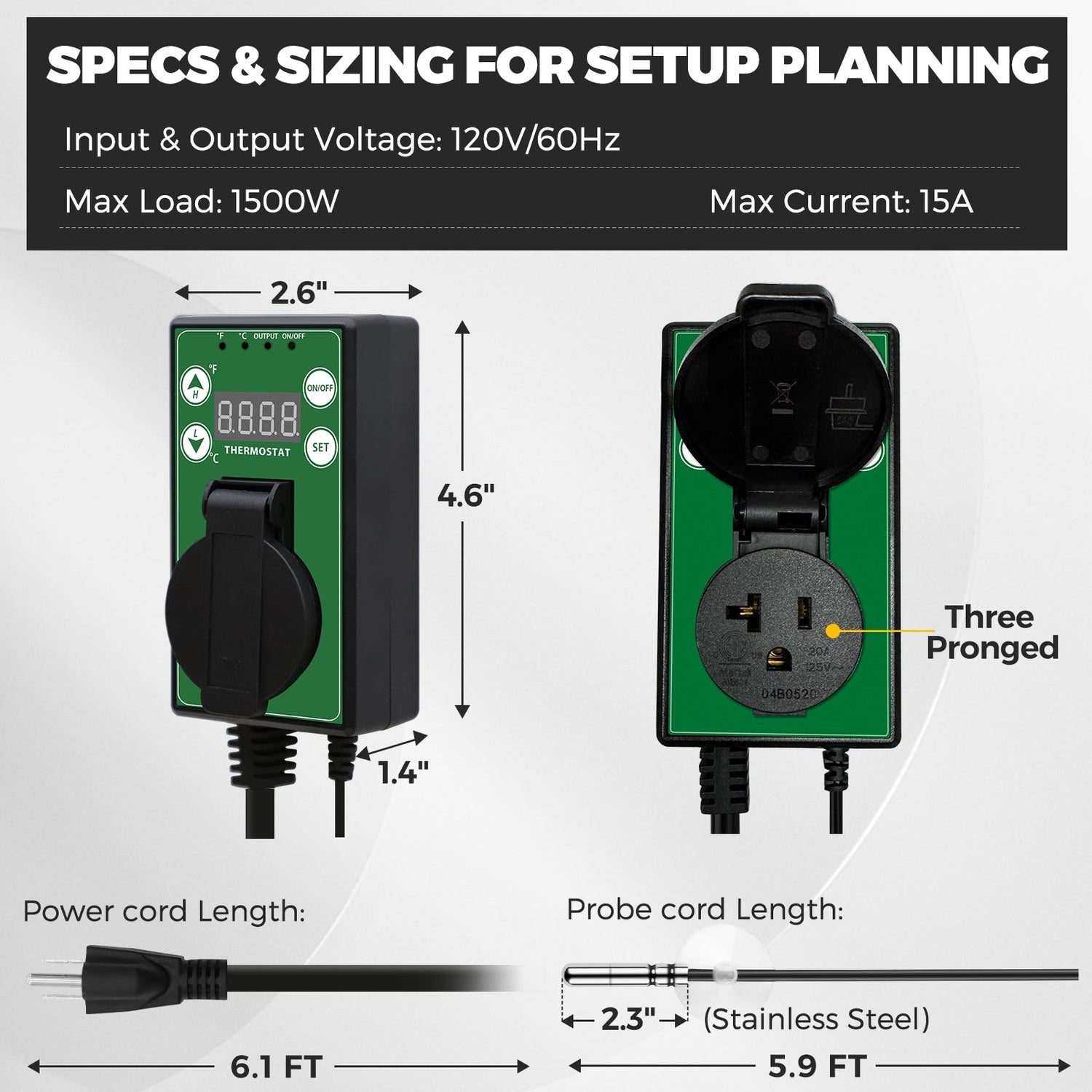 MAX LOAD SUPPORT: Powerful digital thermostat controller handles up to 15 amps or 1500 watts. Built-in safety fuse and indicator lights ensure safe, consistent operation