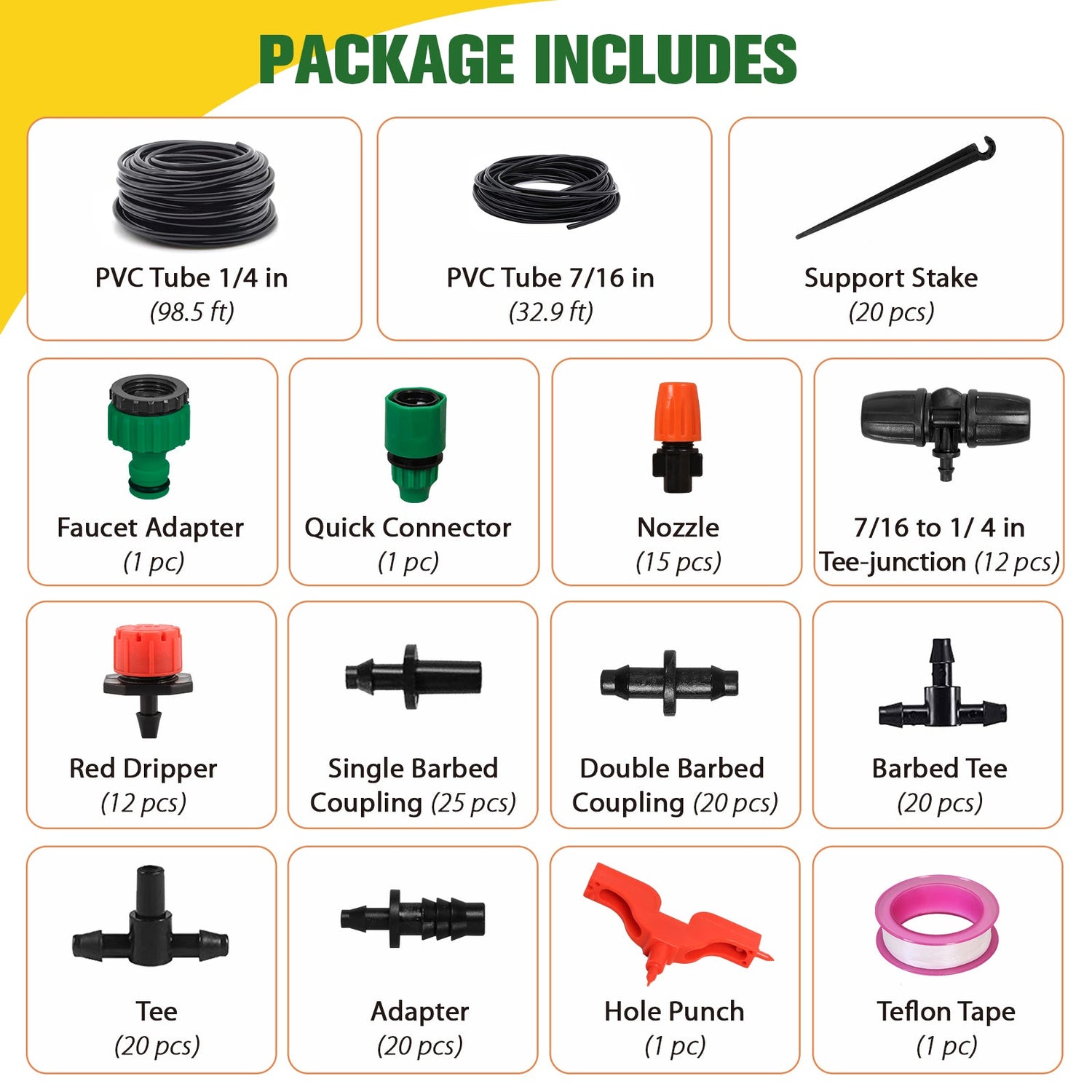 131 ft Automatic Drip Irrigation Kits DIY, 1/4" Distribution Tubing Hose Adjustable Nozzle