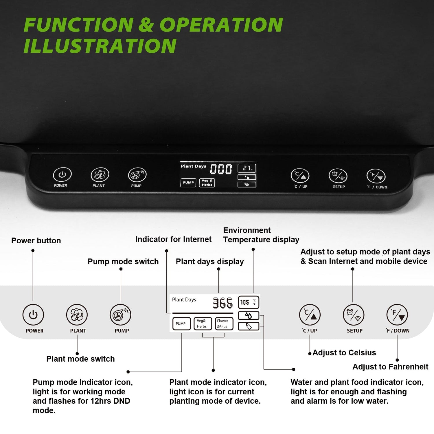 ADJUSTABLE HEIGHT SETTING: The overhead lamp of the indoor growing system can be extended up to 21.5 inches (excluding the water tank), providing ample space for your favorite vegetables, herbs or flowers to grow at a faster pace.