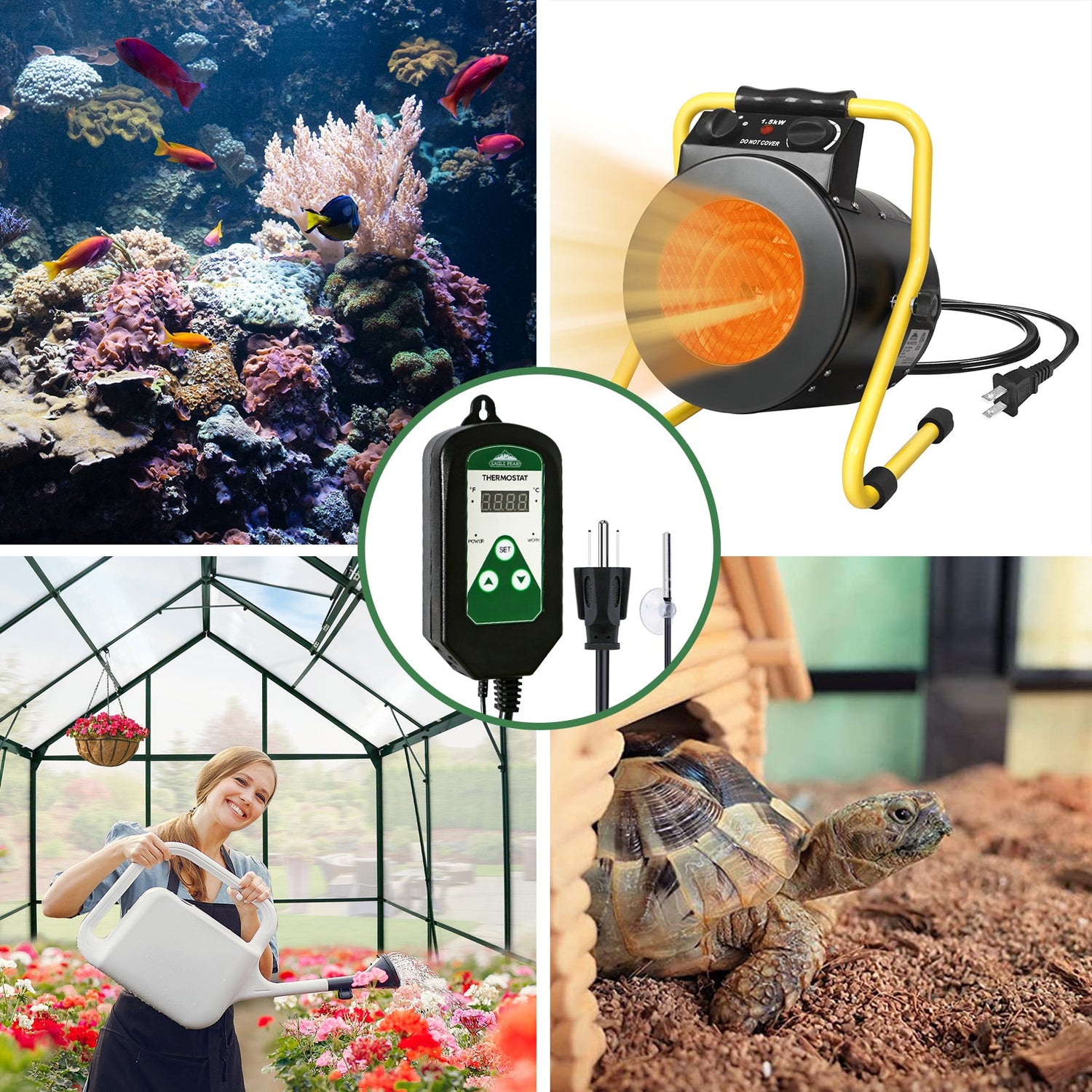- Digital Heat Mat Thermostat Controller 42–108 ºF for Heat Mat, Greenhouse, Heater Fan, Seedling, Germination, Fermentation and Reptiles, 15A/1800W