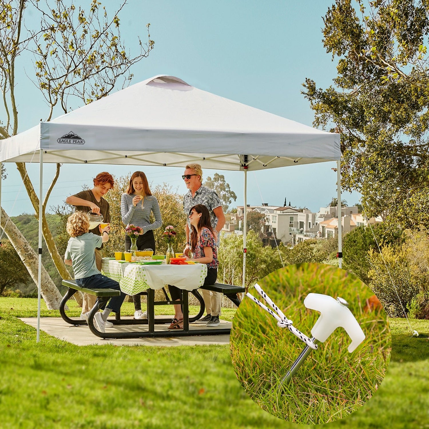 Heavy-duty Set of Peg Stakes: The stakes are made of galvanized steel for corrosion resistance. Measures Dia. 0.3'' and length 10'', designed to hold strong without bending. Make use of the reliable ropes to tether down your structure.
