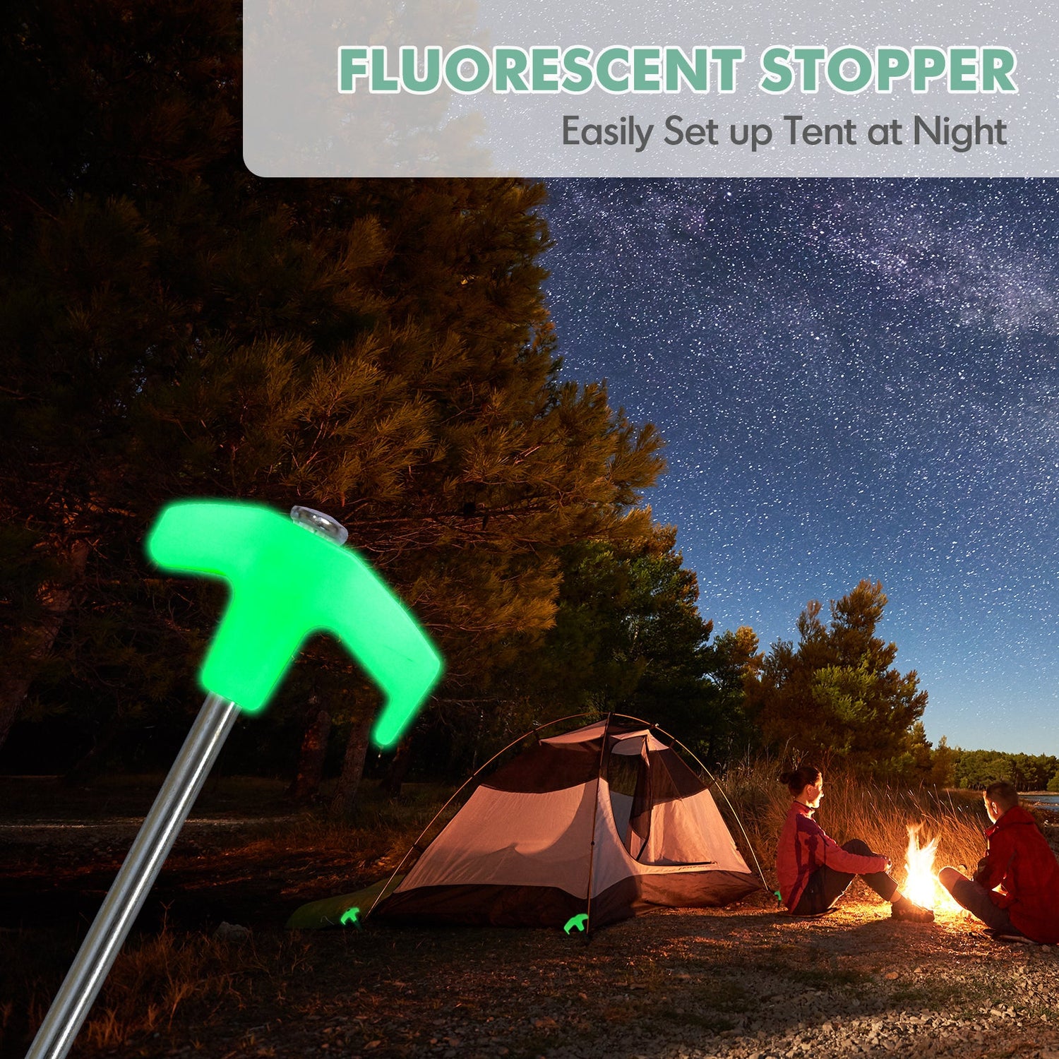 Fluorescent Stopper: The fluorescent color allows you to clearly see the stakes during dim or dark conditions. Easily set up your tent at night.