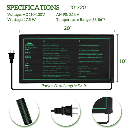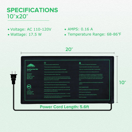 Seedling Heat Mat 10”x20”, UL & MET-Certified Heating Pad, Contains (1) Warming Mat