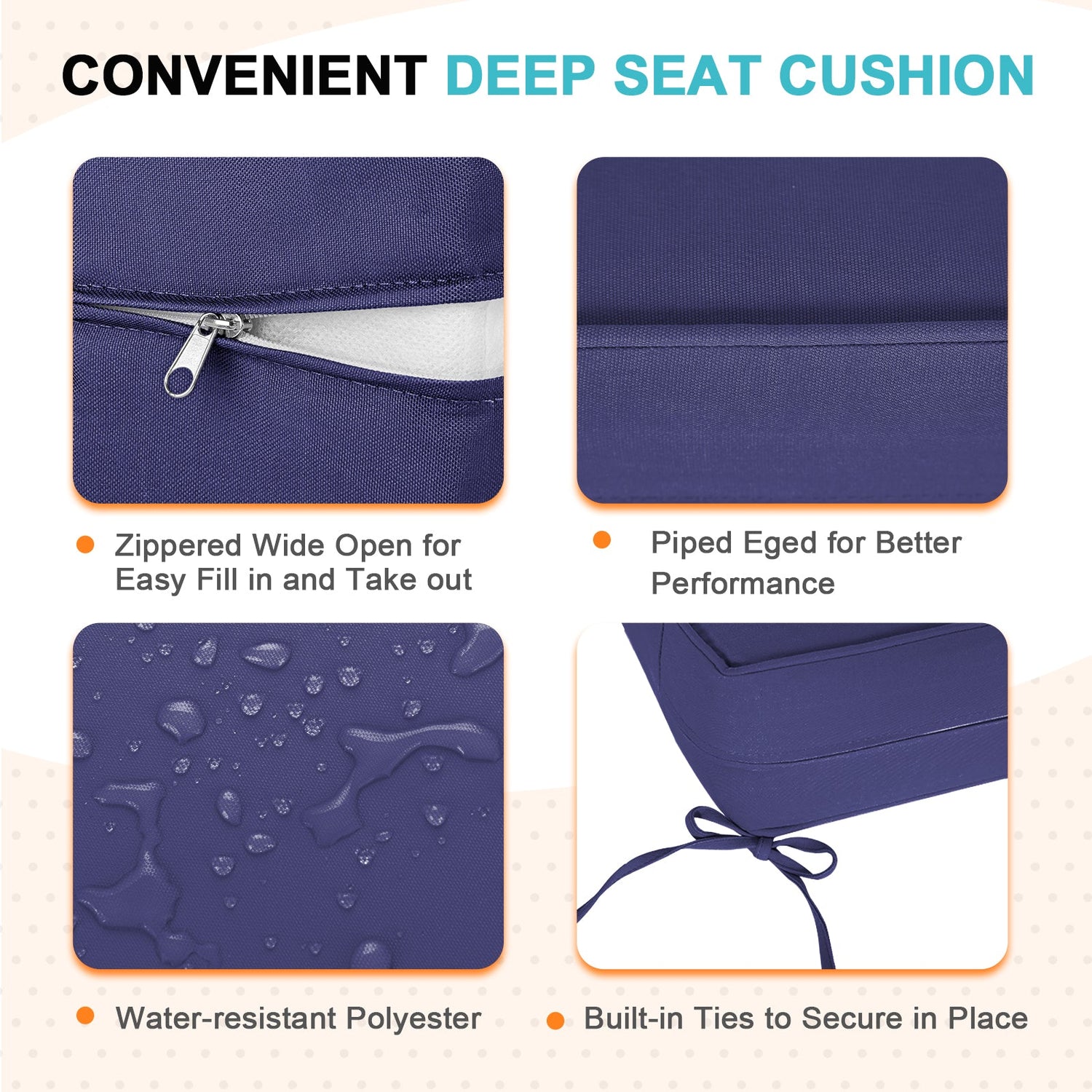 Outdoor Deep Seat Patio Seat Cushion Set, 25x25x5 inch, 2-Piece Back Chair Cushion - Blue is backordered and will ship as soon as it is back in stock.