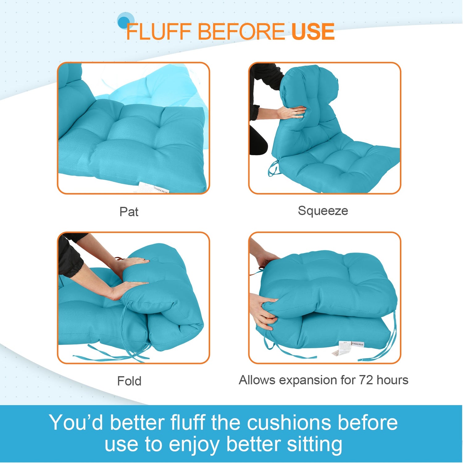 QUALITY FABRIC: The EAGLE PEAK outdoor tufted back patio chair cushion (set of 1) is made of superior water-repellent polyester fabric, perfect for your wicker seat, dining chairs, bench, porch swing or porch rockers. This is an ideal cushion for both indoor and outdoor use.