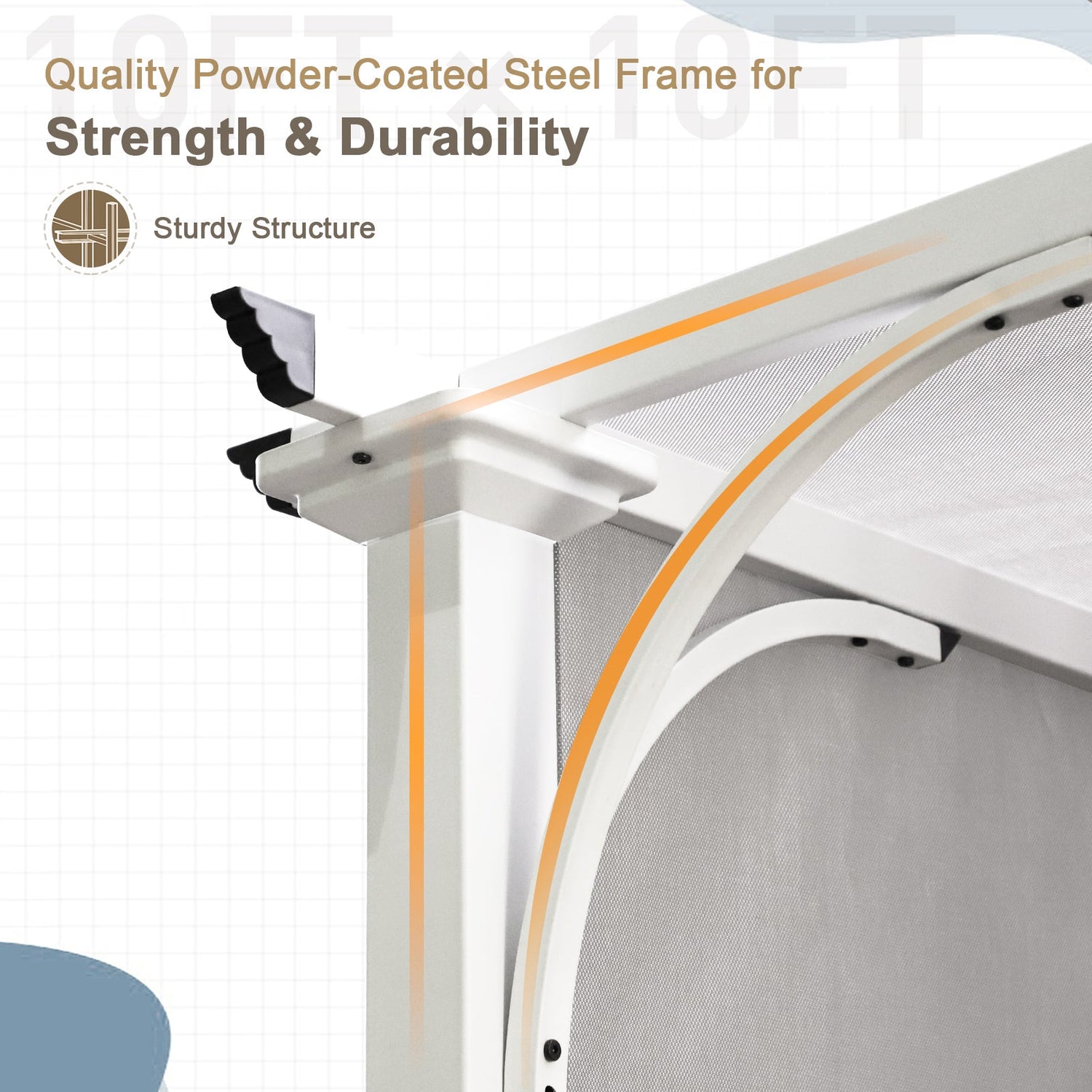 EAGLE PEAK 10x10 Outdoor Pergola Canopy, Metal Sunshelter with Retractable Textilene Canopy Shade for Backyard, Deck, Poolside and Garden
