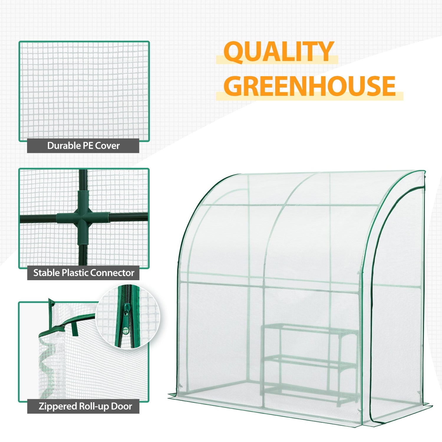 SHELF INCLUDED: This walk-in, lean-to greenhouse features a sturdy flower rack, offering a convenient space to organize and display your plants. The shelf provides ample room for seedlings, potted plants, or gardening tools, helping you maximize growing space and maintain an organized environment.