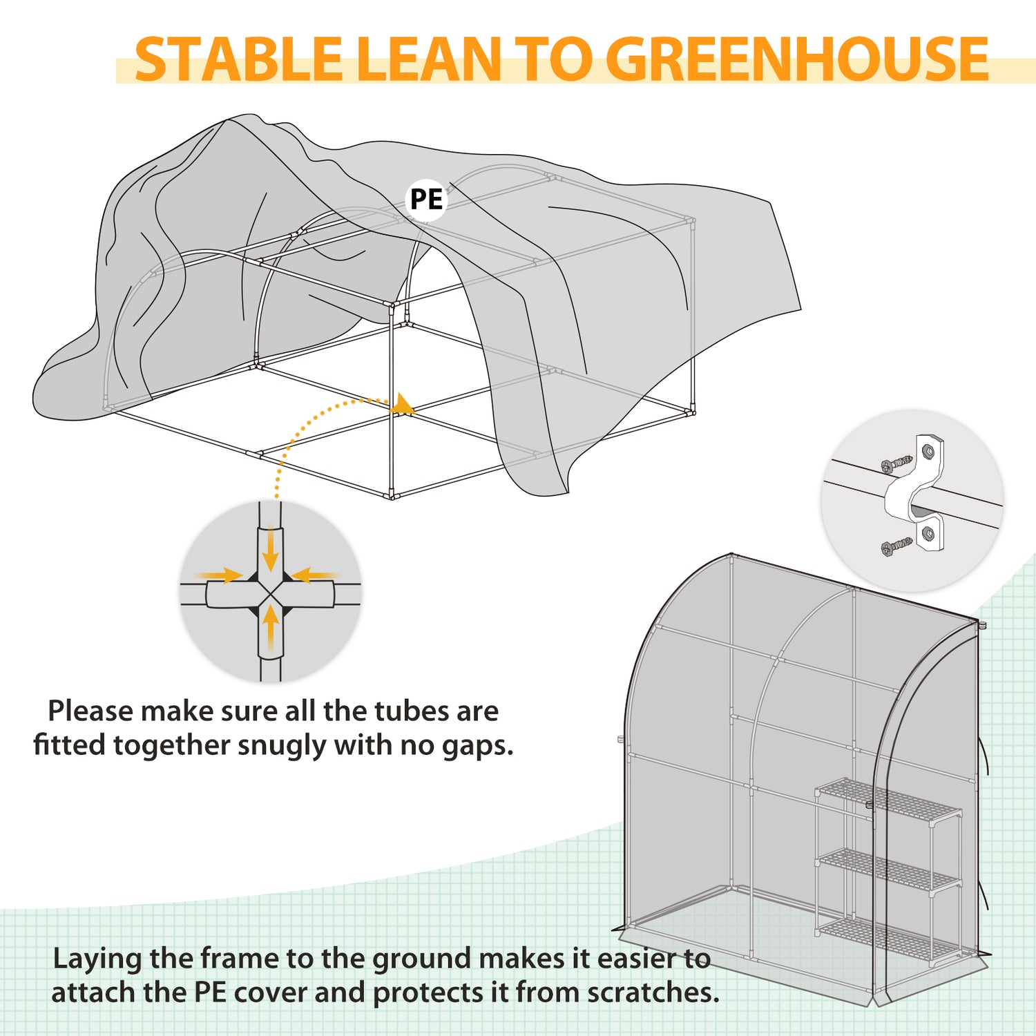 WALL SUPPORT REQUIRED: Designed as a lean-to structure, this greenhouse must be installed against a solid, stable wall to ensure safety and durability, especially in windy or harsh weather conditions.