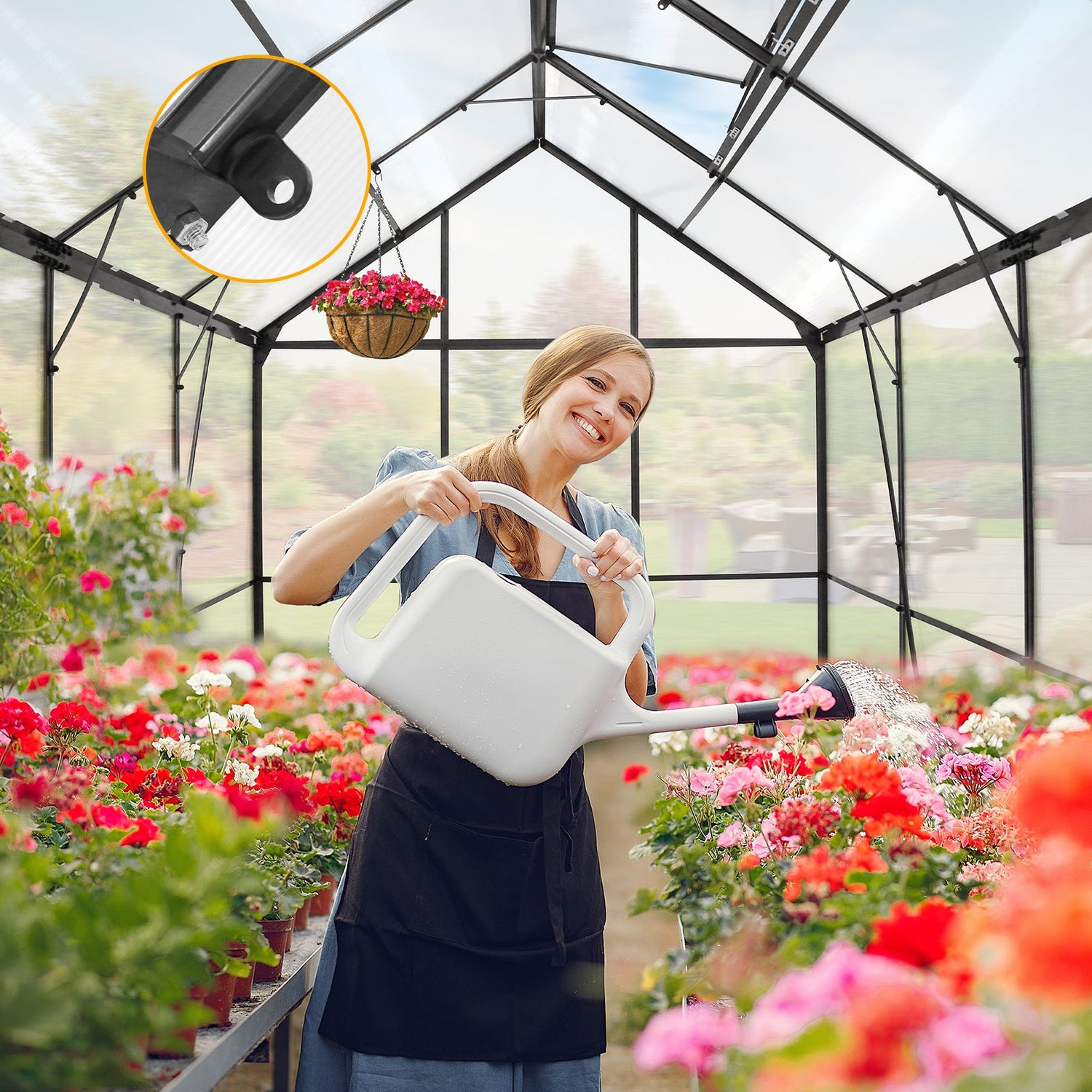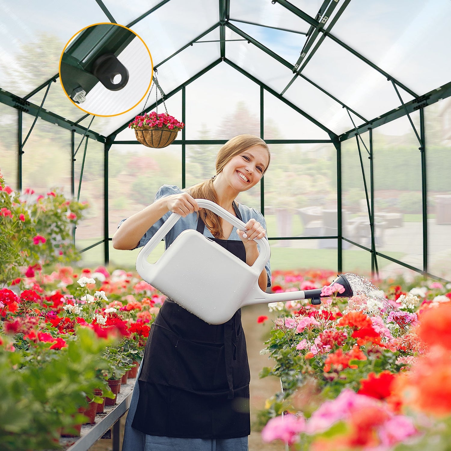 Built-in Rain Gutter with Hose: Designed with rain gutters and hose for drainage purposes. It is a good way to collect the rain for watering the plants inside.