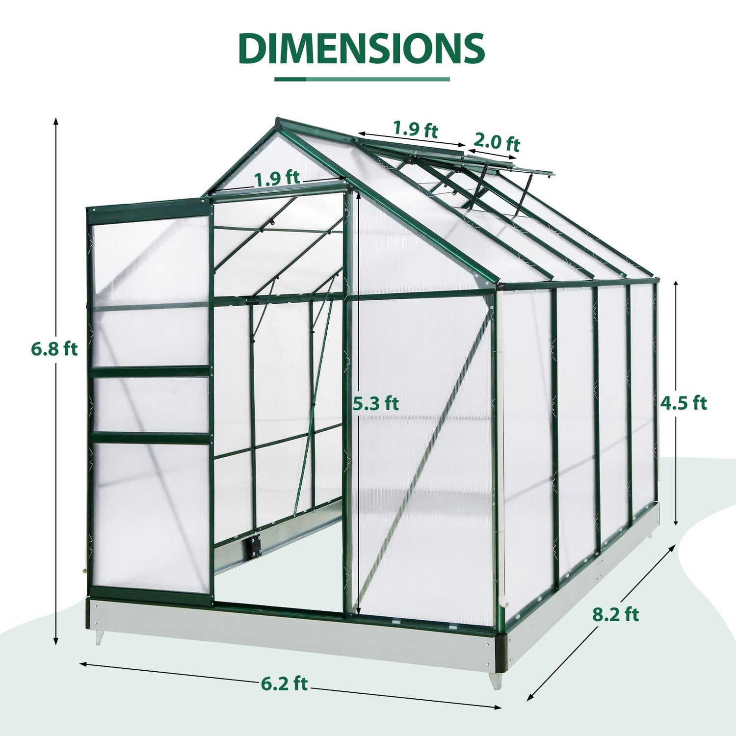 6x8x7 Polycarbonate and Aluminum Walk-in Hobby Greenhouse