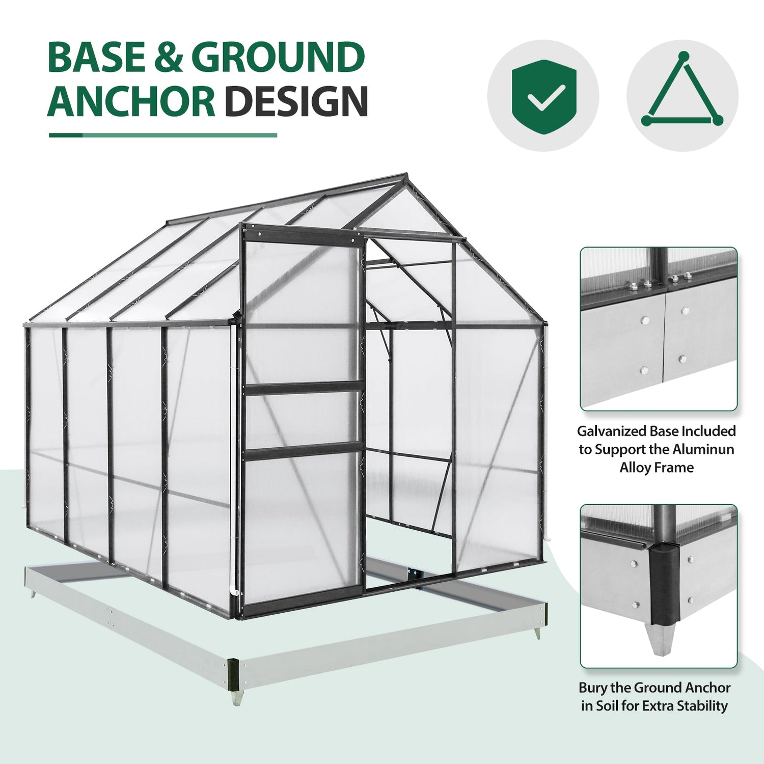 Premium Material: The outdoor hobby green house is made of a high-quality aluminum frame and 4 mm twin-wall poly carbonate roof panels. The transparent panels help block UV rays but also allow maximum light transmission. The heavy-duty galvanized base combined with our unique ground anchor design makes this greenhouse the toughest and most resilient available.