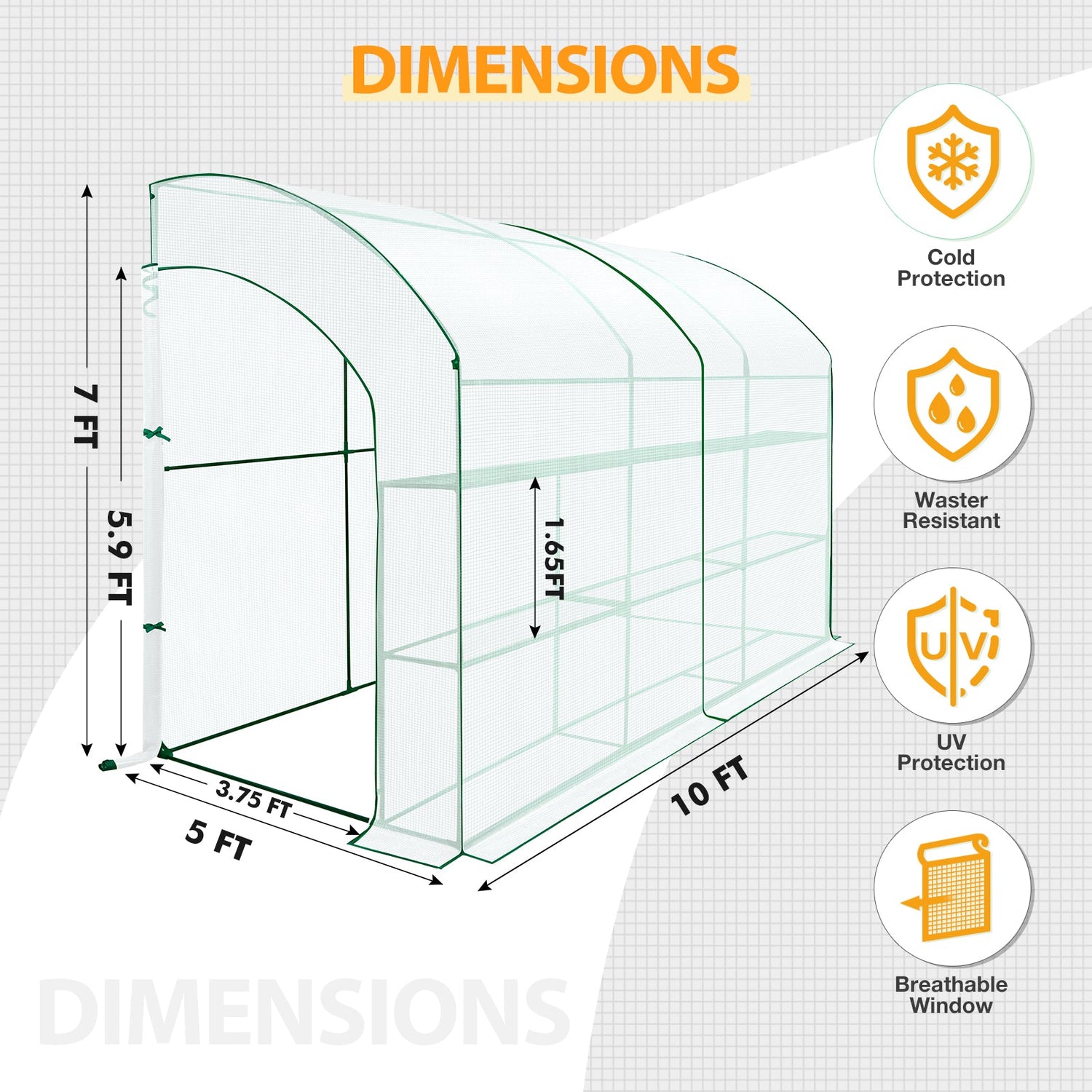 9.9x4.9x7.1 Outdoor Lean to Walk-in Greenhouse with Shelf