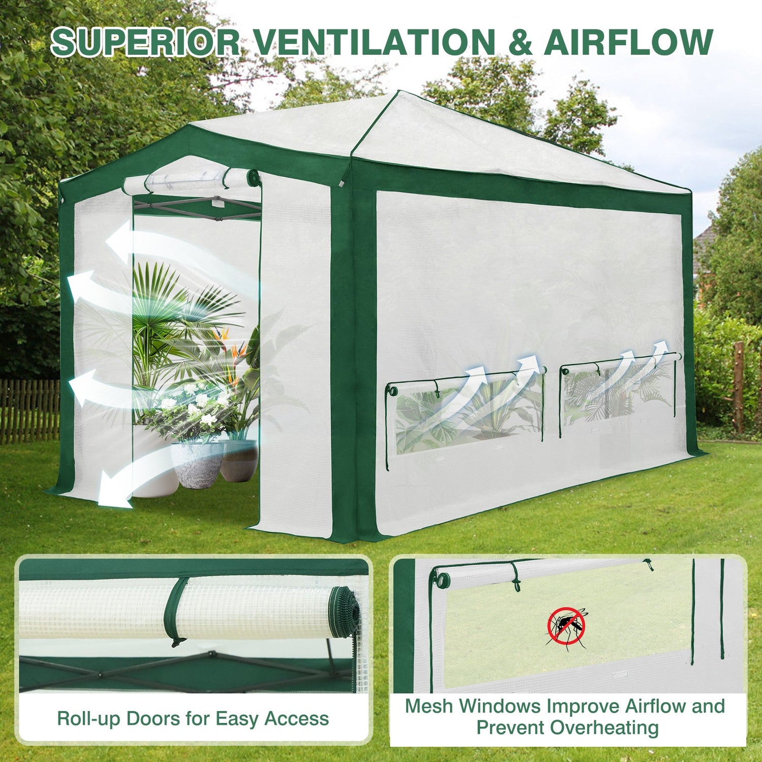 EAGLE PEAK 12x8 Portable Walk in Greenhouse with Polyester Reinforced Corners, Instant Pop up Indoor Outdoor Gardening Green House, Roll Up Zipper Entry Doors and Mesh Windows