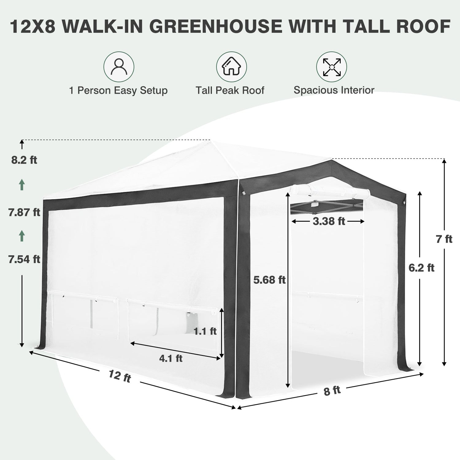 12x8 Portable Walk in Greenhouse with Polyester Reinforced Corners