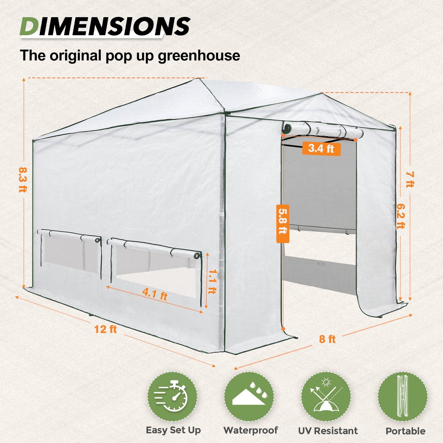 12x8 Portable Large Walk-in Pop Up Greenhouse