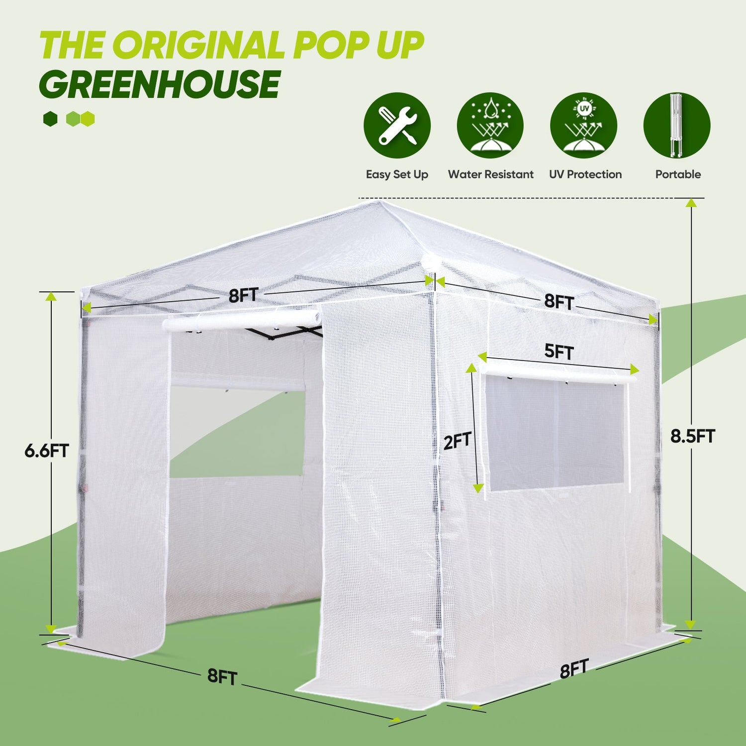 SPACE TO WORK: Enjoy freedom of movement with the spacious walk-in 8x8 ft greenhouse. Shelving fits comfortably in it (Please search SKU: SHV2-GRN-AZ for the greenhouse shelves). This greenhouse features zippered roll up doors and mesh windows.