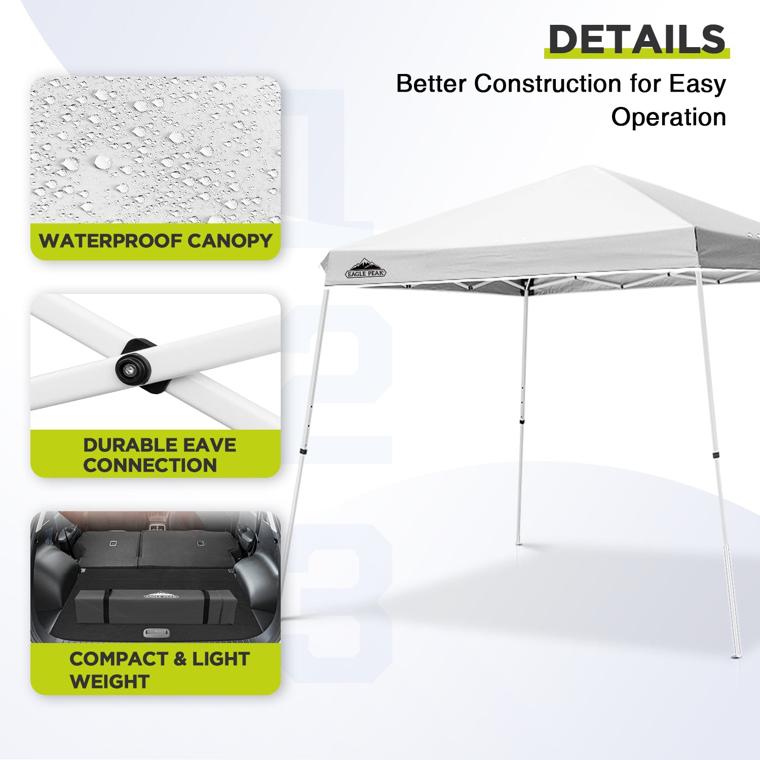 EAGLE PEAK 11x11 Slant Leg Pop-up Canopy Tent, Shelter 11x11 Base 9x9 Top, Blue / Green / White