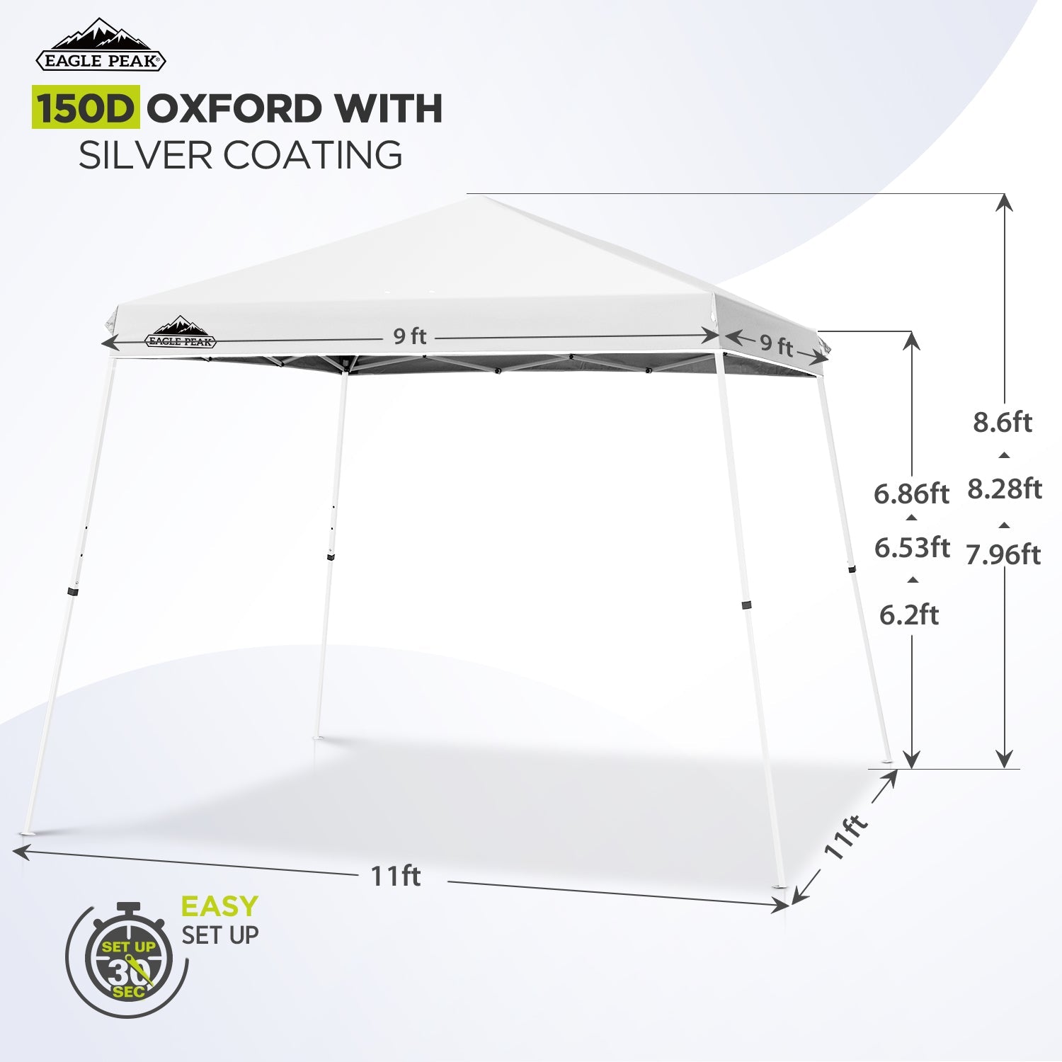 EAGLE PEAK 11x11 Slant Leg Pop - up Canopy Tent, Shelter 11x11 Base 9x9 Top, Blue / Green / White - Eagle Peak Canopy and Outdoor Products