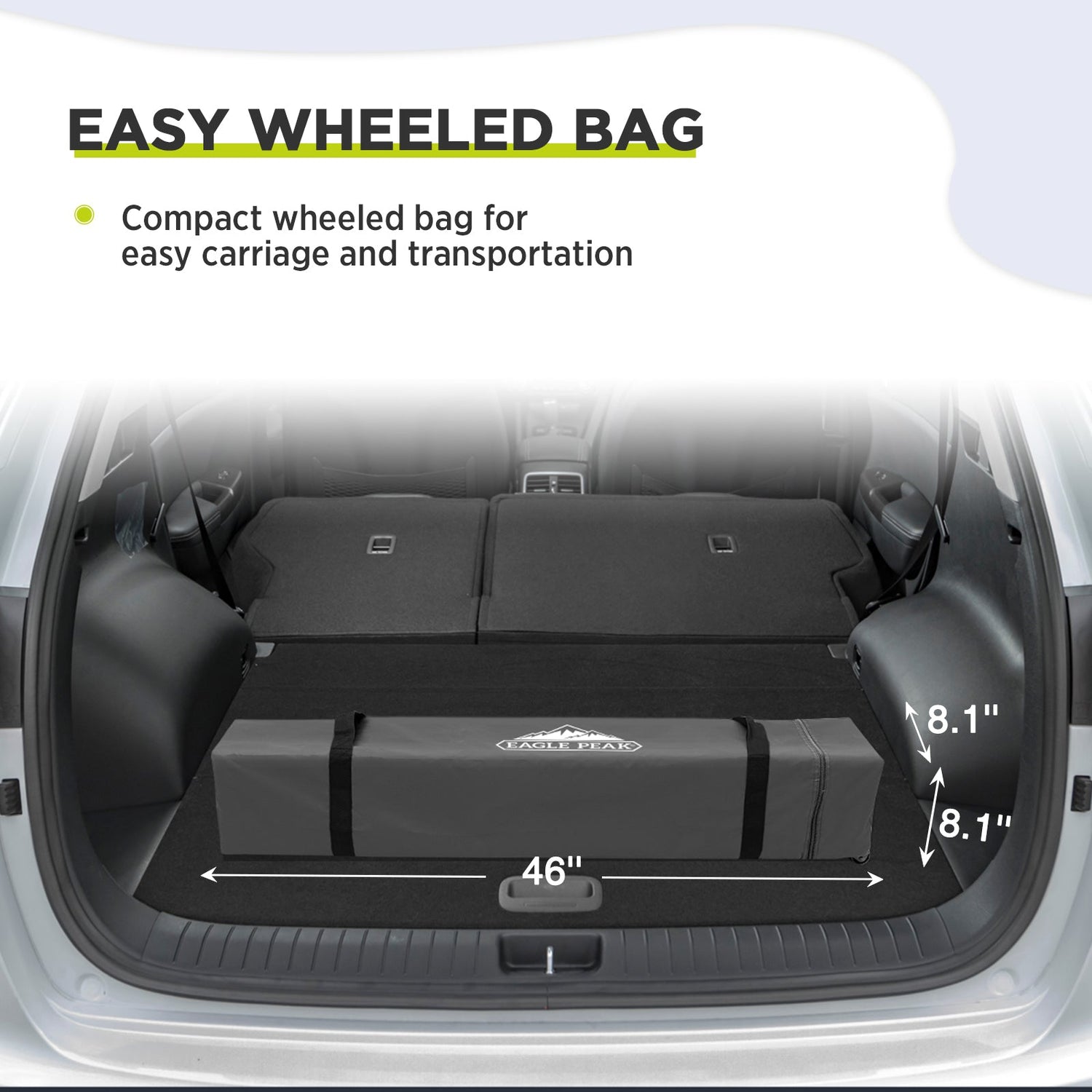 COMPACT AND PORTABLE: Take this lightweight canopy anywhere with the 600x300D wheeled carrying bag; fits into most car trunks. Perfect for tailgates, the beach, the park or wherever your fun begins!