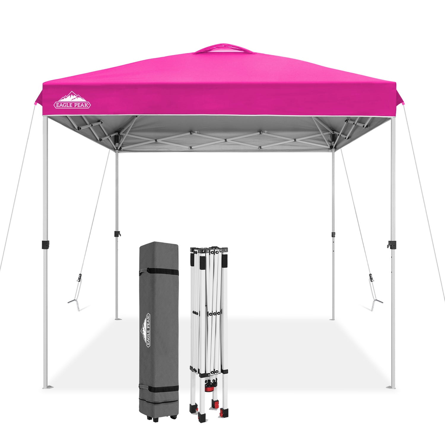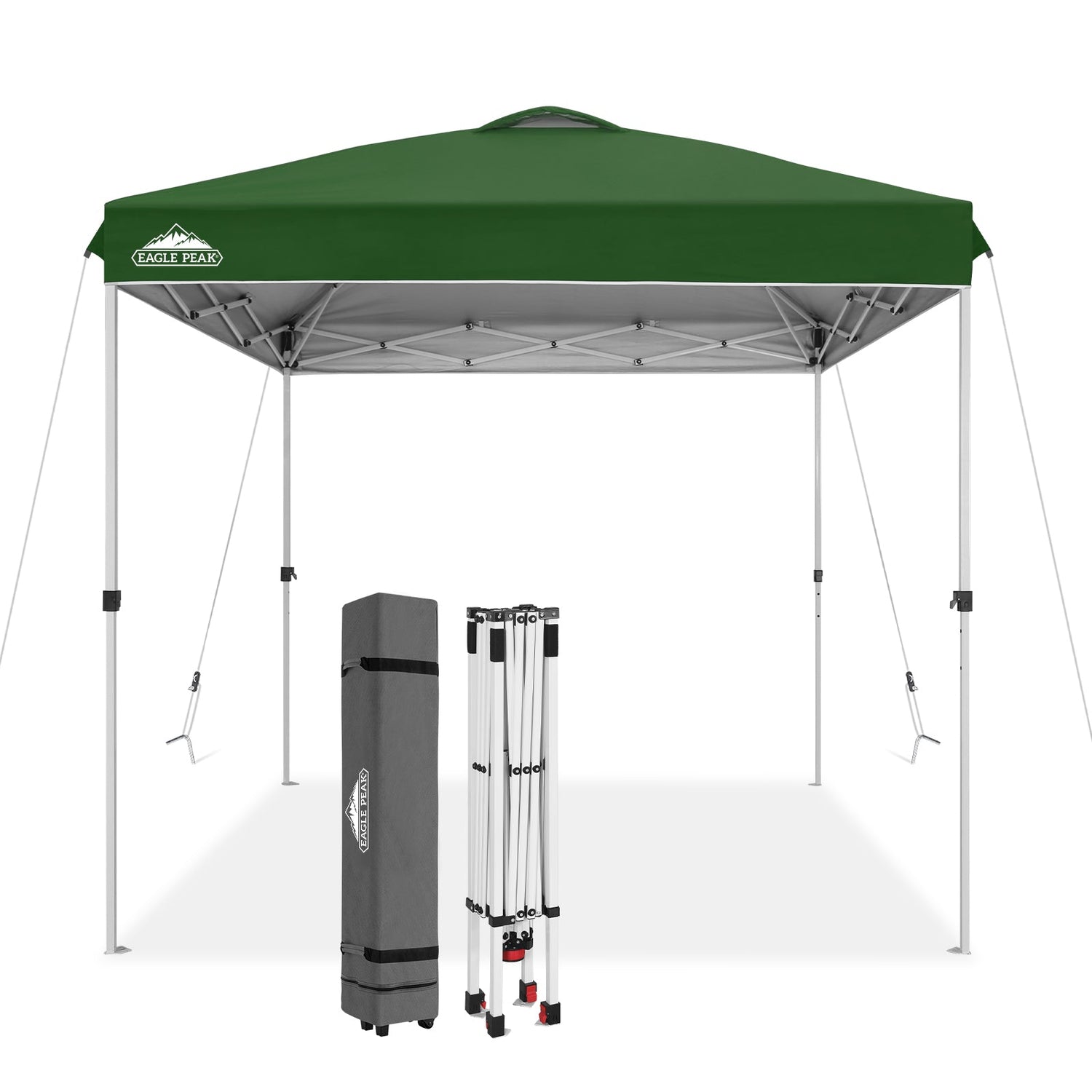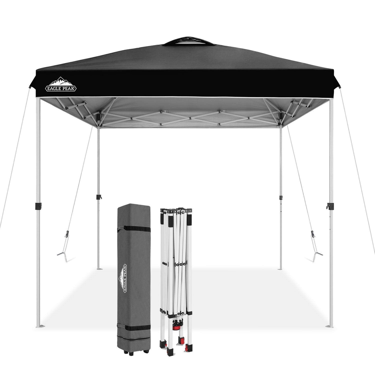 UPGRADED PACKAGE: This 8 x 8 ft instant canopy comes with 1 x canopy frame, 1 x canopy top, 1 x roller bag, 4 x guy ropes, 8 x steel stakes. Take this canopy with you anywhere using the portable compact 600x300D wheeled carrying bag.