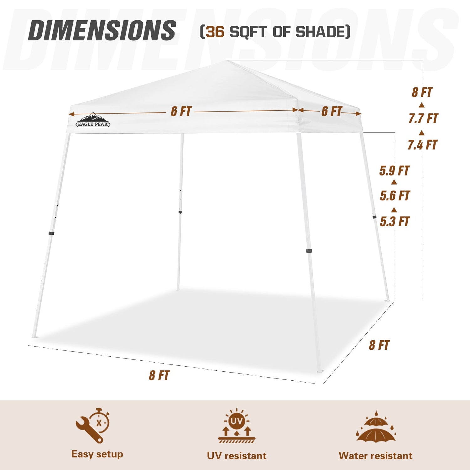 8x8 Slant Leg Pop-up Canopy Tent, Shelter 8x8 Base 6x6 Top