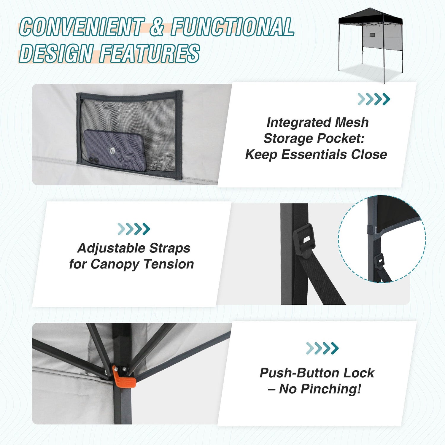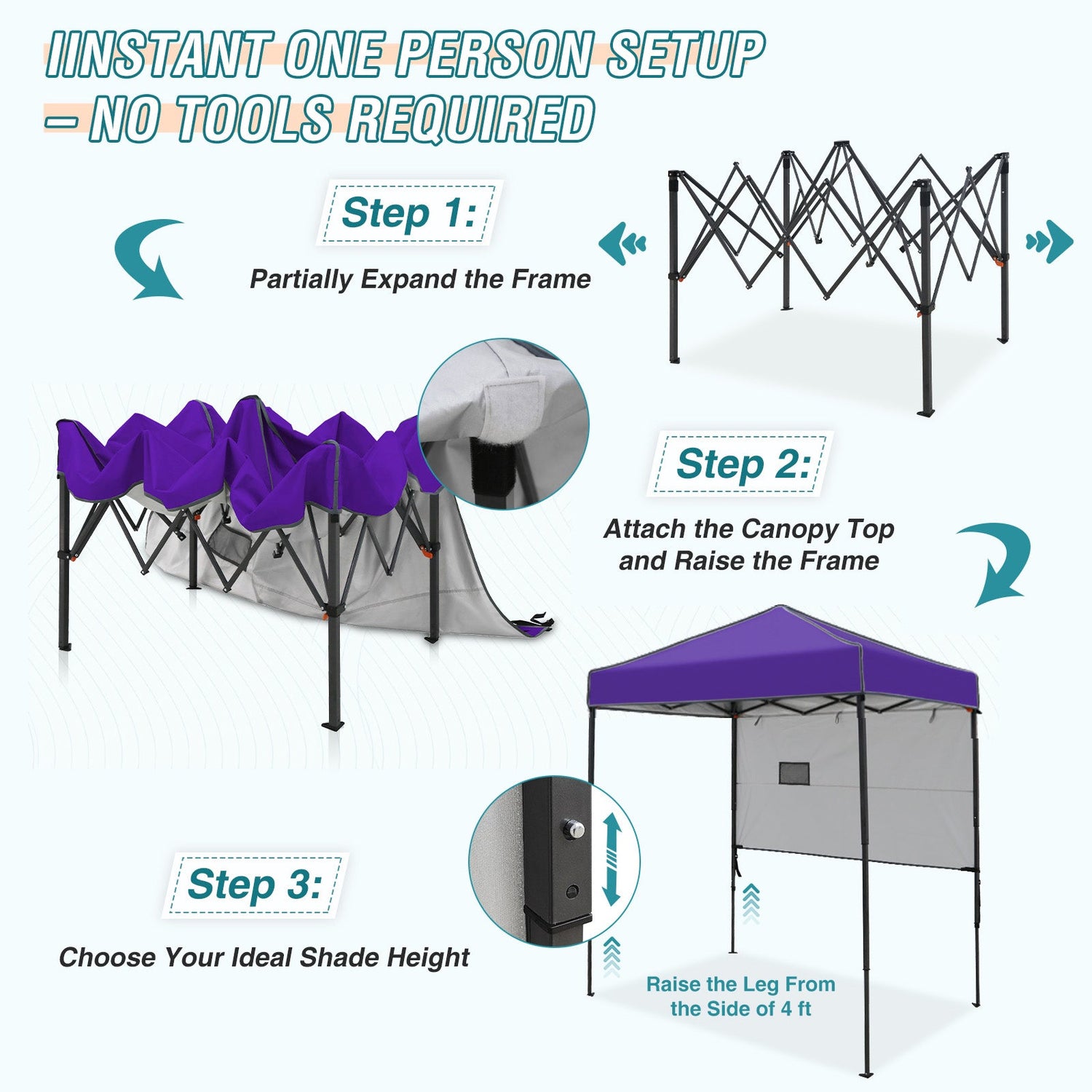6x4 ft Instant Pop Up Canopy with Adjustable Sun Wall
