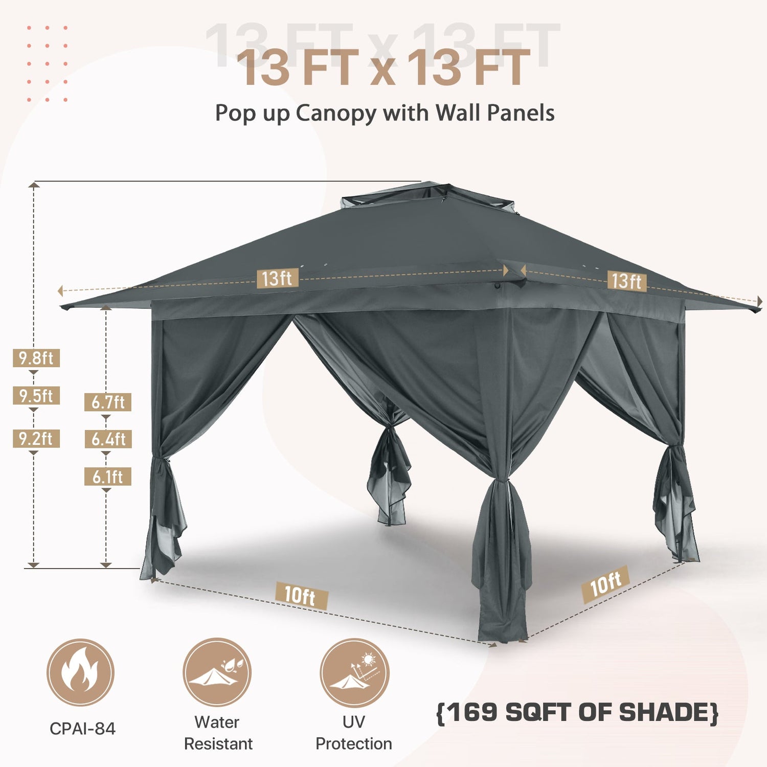 13x13 Pop Up Gazebo with 4 Wall Panels